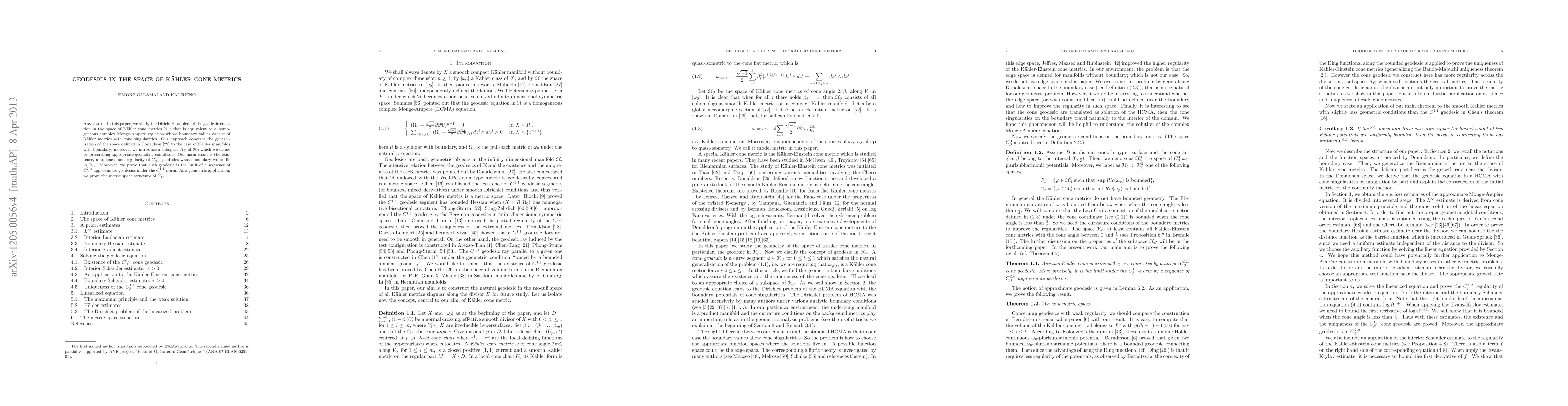 This paper explores the Dirichlet problem for geodesics in the space of Kähler cone metrics, proving the existence, uniqueness, and regularity of $C^{1,1}_\b$ geodesics. It also demonstrates the metric space structure of a defined subspace $\mathcal H_C$ within the Kähler cone metrics space.