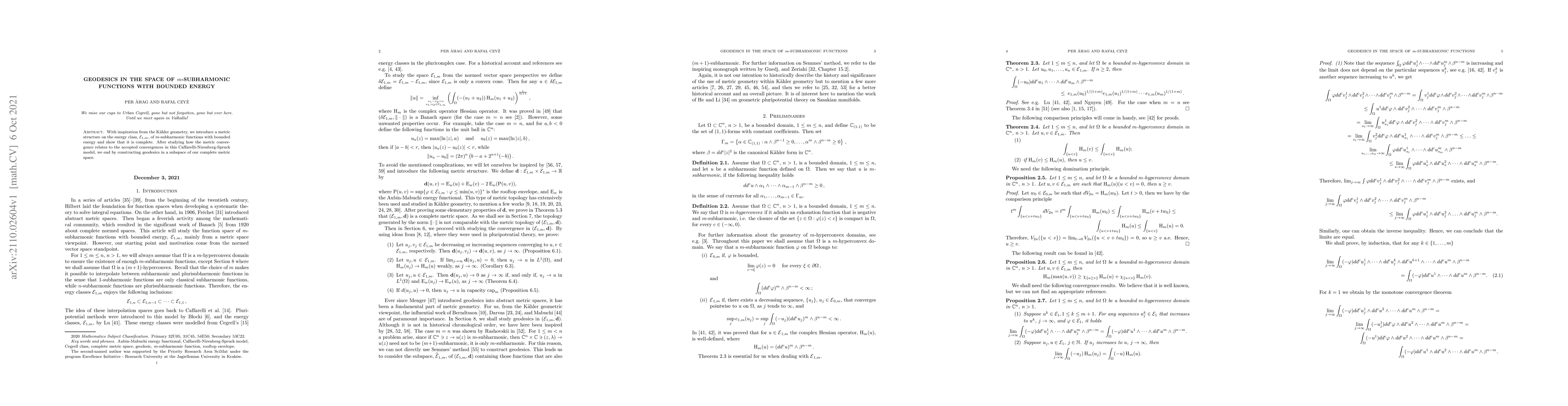 With inspiration from the K\"ahler geometry, we introduce a metric structure on the energy class, $\mathcal{E}_{1,m}$, of $m$-subharmonic functions with bounded energy and show that it is complete. After studying how the metric convergence relates to the accepted convergences in this Caffarelli-Nirenberg-Spruck model, we end by constructing geodesics in a subspace of our complete metric space.