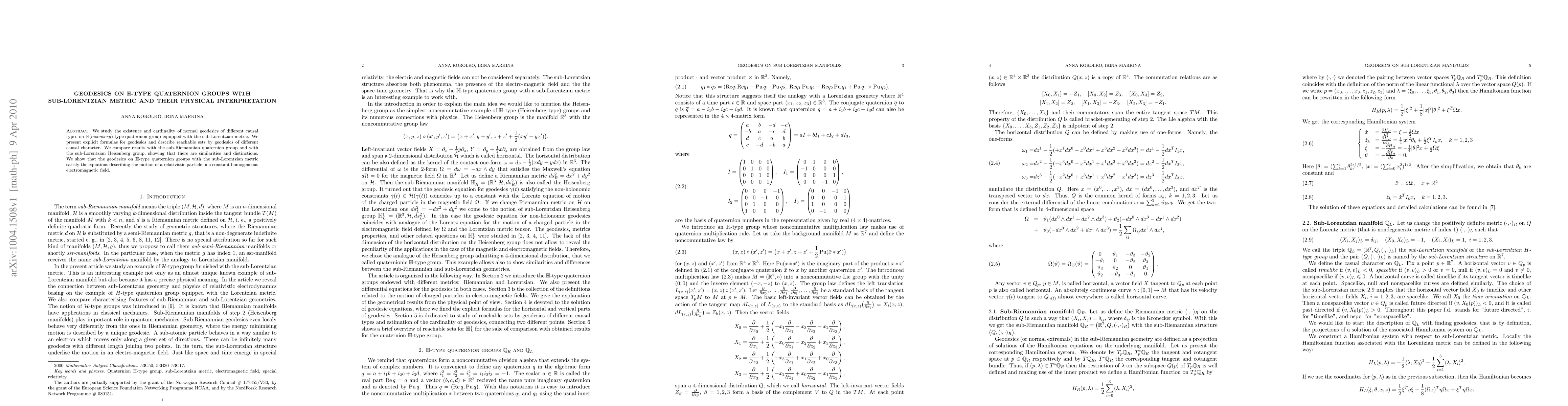 This paper investigates geodesics on H-type quaternion groups with sub-Lorentzian metric, finding similarities with related groups and a physical interpretation as relativistic particle motion in constant electromagnetic fields.