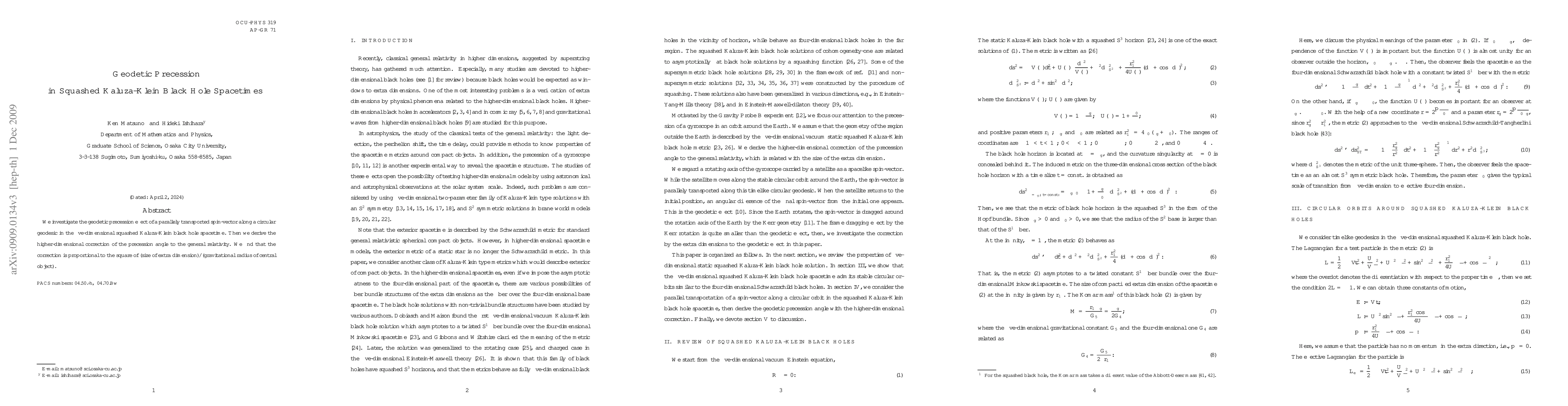 This paper examines the geodetic precession of a spin-vector in a five-dimensional squashed Kaluza-Klein black hole, deriving a higher-dimensional correction to general relativity's precession angle. The correction is proportional to the square of the ratio of the extra dimension's size to the gravitational radius of the central object.
