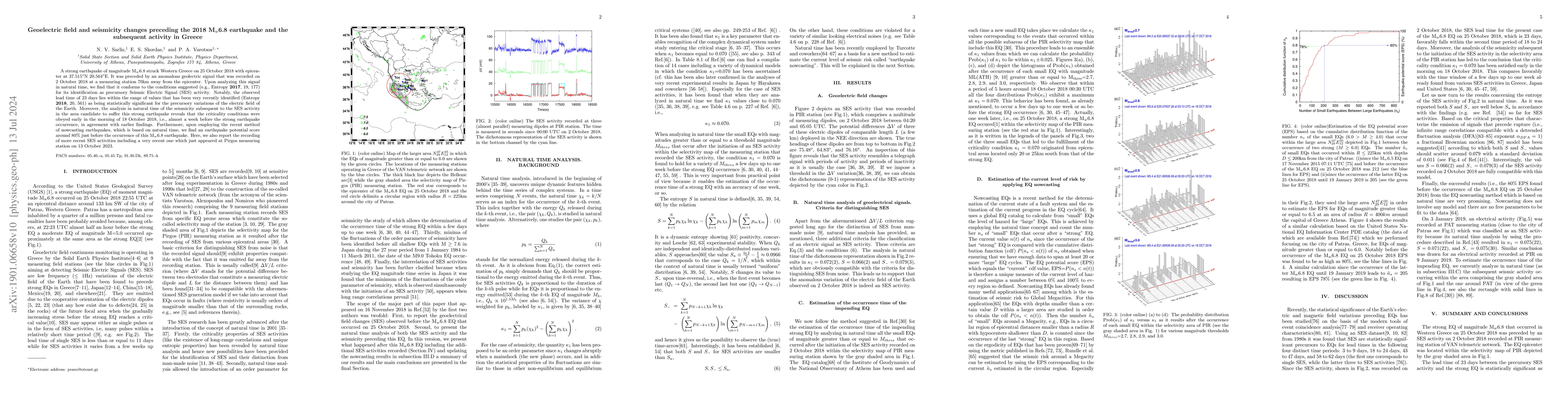 This study investigates the geoelectric field anomalies preceding the Mw6.8 earthquake in Western Greece on 25 October 2018, identifying a precursory Seismic Electric Signal (SES) 23 days prior, which aligns with recent findings on significant precursory electric field variations. Additionally, the analysis reveals criticality conditions in seismicity almost a week before the earthquake, and nowcasting methods predict an 80% earthquake potential score just before the event.