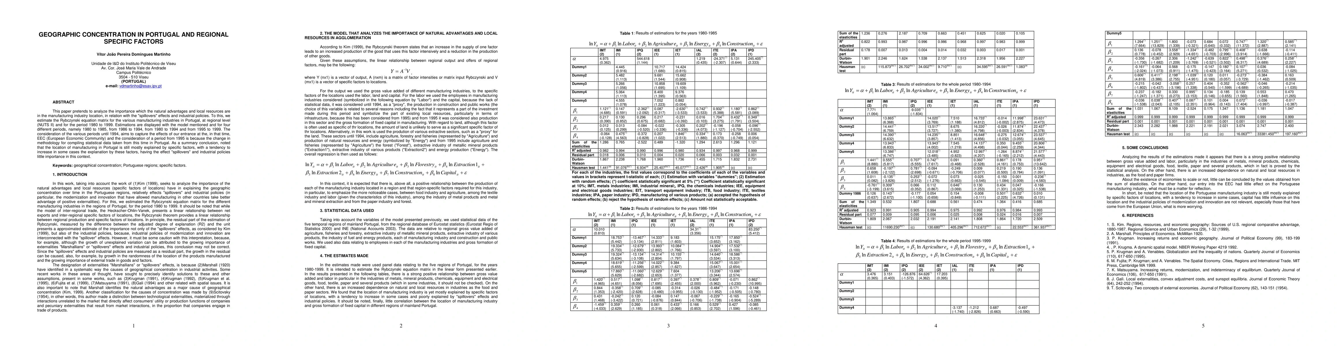 This paper examines how natural advantages and local resources influence the location of manufacturing in Portugal, finding that regional specific factors predominantly determine location, while "spillovers" effects and industrial policies play a minor role. The study analyzes data from 1980 to 1999, segmented into four periods to account for economic and statistical changes.