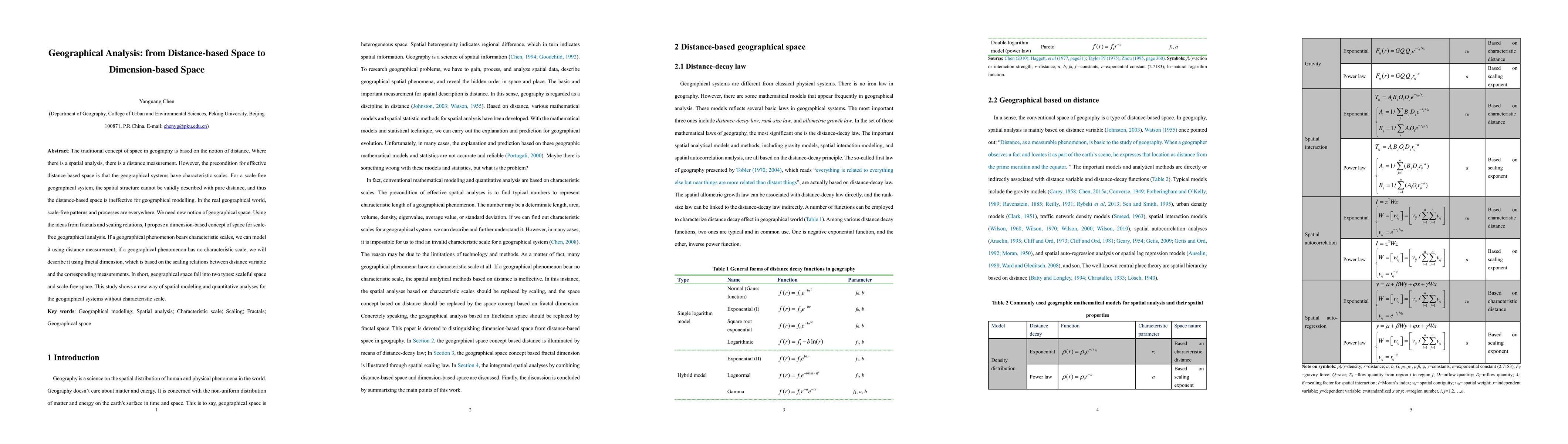 This paper proposes a new dimension-based concept of space for scale-free geographical analysis, replacing traditional distance-based methods with fractal dimension measurement.
