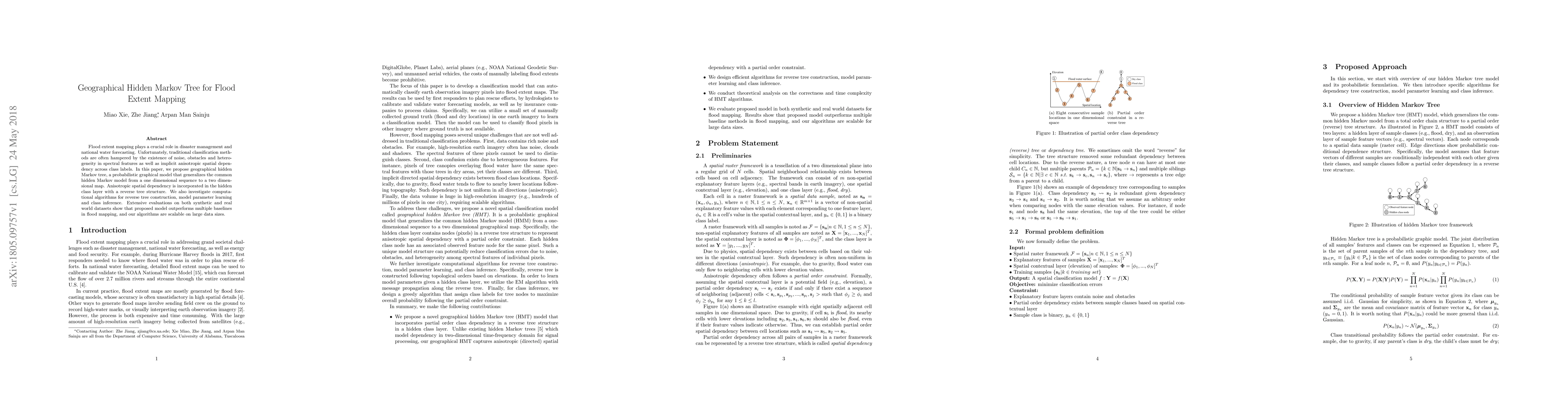 This paper introduces a geographical hidden Markov tree for flood extent mapping, addressing challenges posed by noise and spatial heterogeneity. The proposed model outperforms traditional methods and is shown to be scalable through evaluations on synthetic and real datasets.