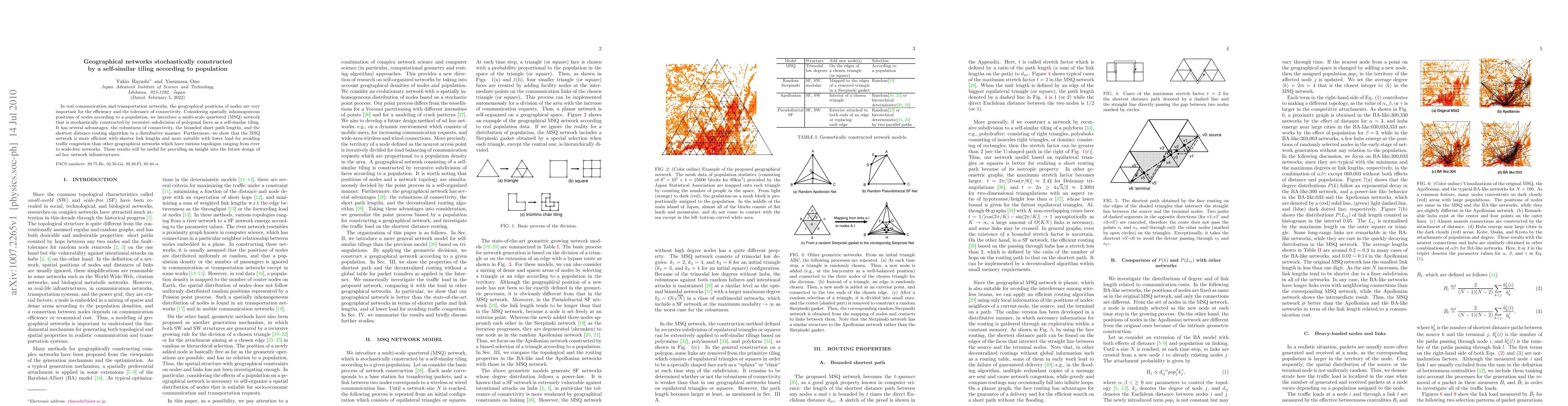 In real communication and transportation networks, the geographical positions of nodes are very important for the efficiency and the tolerance of connectivity. Considering spatially inhomogeneous positions of nodes according to a population, we introduce a multi-scale quartered (MSQ) network that is stochastically constructed by recursive subdivision of polygonal faces as a self-similar tiling. It has several advantages: the robustness of connectivity, the bounded short path lengths, and the shortest distance routing algorithm in a distributive manner. Furthermore, we show that the MSQ network is more efficient with shorter link lengths and more suitable with lower load for avoiding traffic congestion than other geographical networks which have various topologies ranging from river to scale-free networks. These results will be useful for providing an insight into the future design of ad hoc network infrastructures.