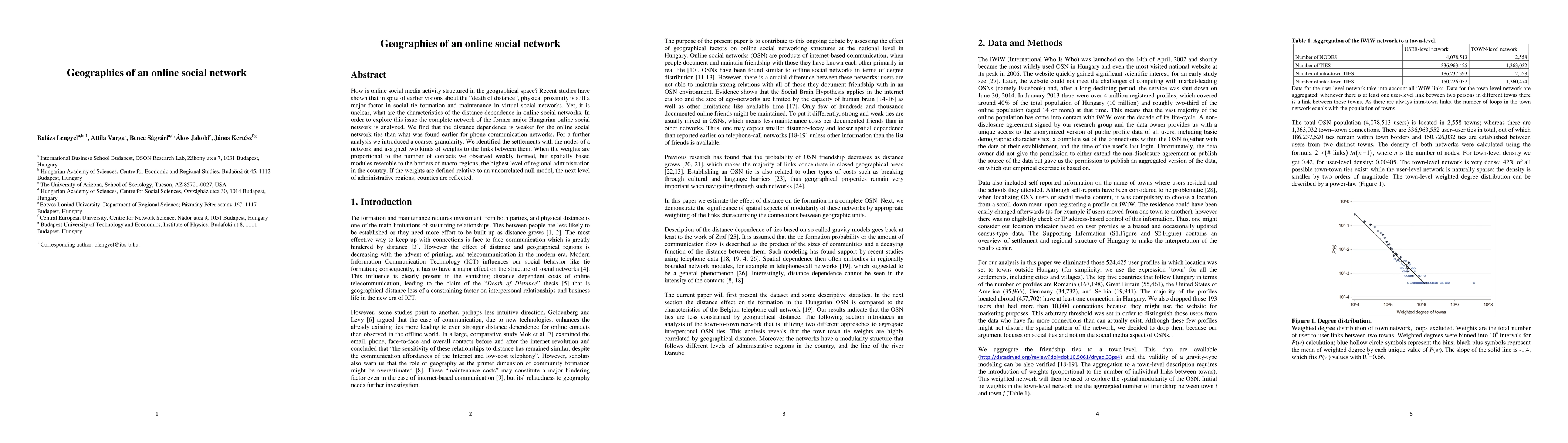 This paper examines the geographical structuring of a major Hungarian online social network, revealing that physical distance has a weaker influence on online social ties compared to phone communication networks. The study identifies spatial modules based on macro-regions and counties, indicating a nuanced relationship between geography and online social connectivity.