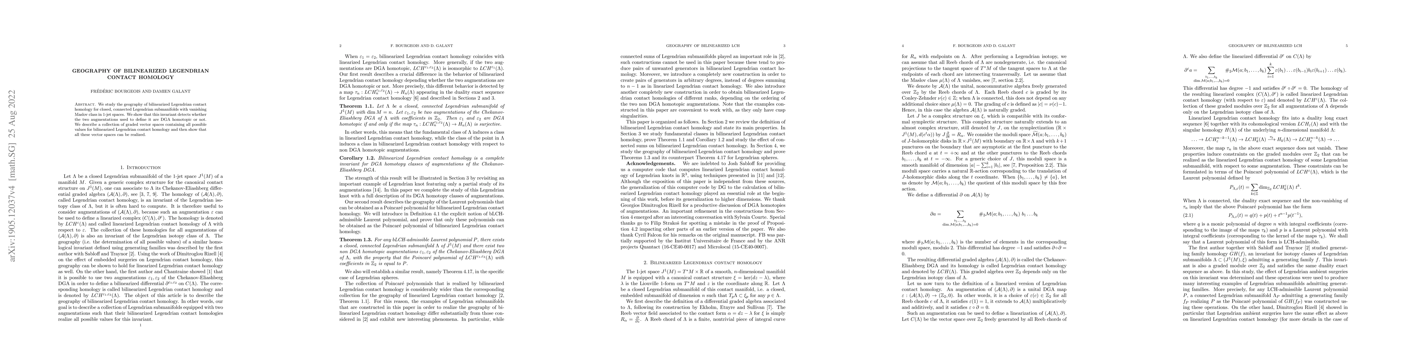 This paper explores the bilinearized Legendrian contact homology for closed, connected Legendrian submanifolds with vanishing Maslov class, demonstrating that it distinguishes between DGA homotopic augmentations. It also presents a comprehensive collection of graded vector spaces representing all possible values of this homology and proves their realizability.