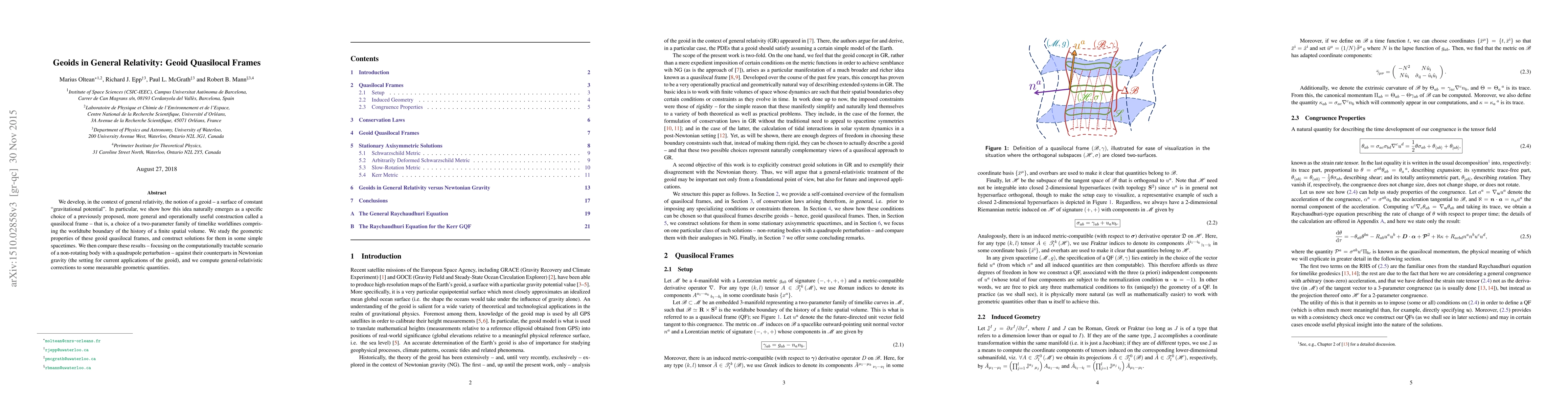 This paper introduces geoids as surfaces of constant gravitational potential in general relativity, framing them within the context of quasilocal frames. It explores their geometric properties and compares general-relativistic corrections to Newtonian gravity for a non-rotating body with a quadrupole perturbation.