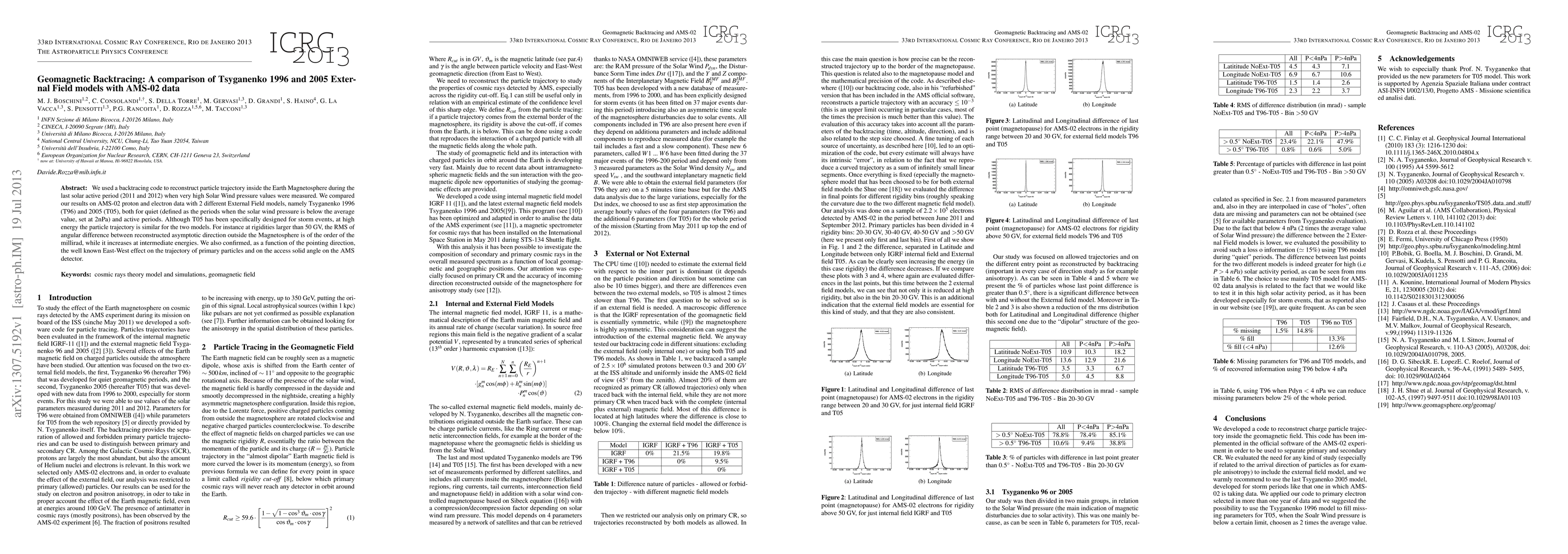 A backtracing code was developed to reconstruct particle trajectories inside the Earth's magnetosphere using AMS-02 data during the solar active period (2011-2012). The study compared Tsyganenko 1996 (T96) and 2005 (T05) external field models for both quiet and active solar periods.