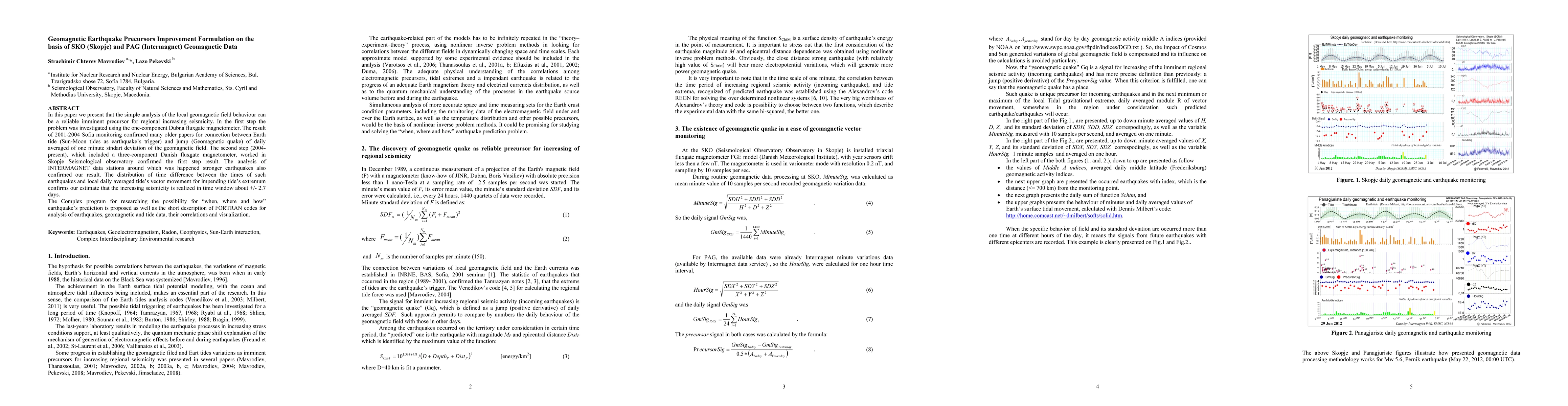 This paper demonstrates that local geomagnetic field behavior can reliably predict regional seismic activity. Analysis using magnetometer data from Skopje and INTERMAGNET stations shows a correlation between geomagnetic fluctuations and seismic events, suggesting a time window of about +/- 2.7 days for increased seismicity.