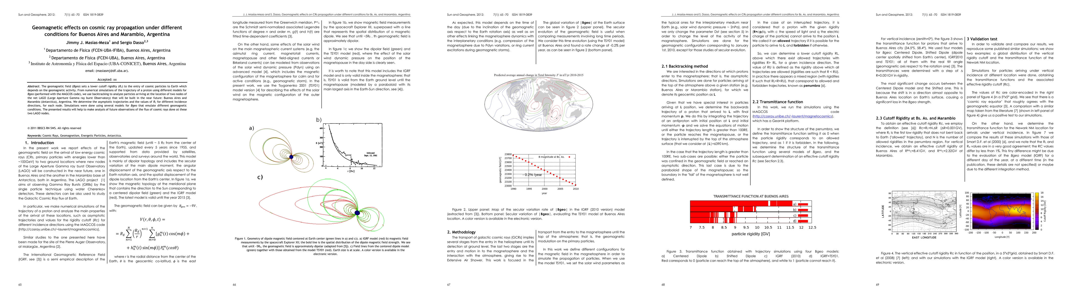 This paper investigates the geomagnetic effects on cosmic ray propagation to two LAGO observatory nodes in Buenos Aires and Marambio, Argentina, using numerical simulations. The study determines the lower cutoff rigidity for cosmic particles under various geomagnetic conditions, providing insights for future cosmic ray flux observations.