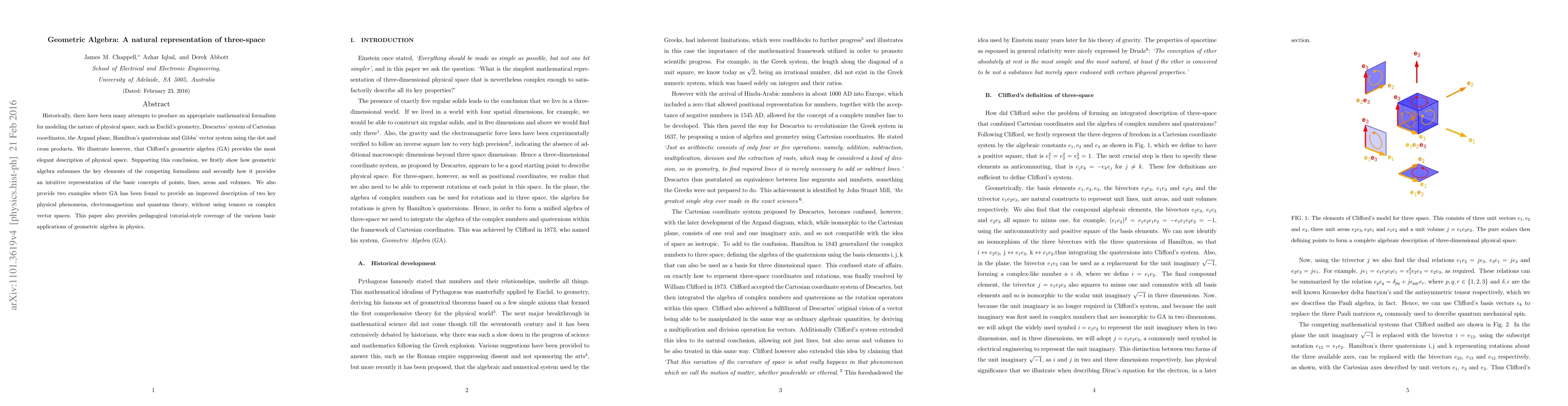This paper argues that Clifford's geometric algebra offers the most elegant and intuitive representation of three-dimensional physical space, subsuming key elements of previous mathematical formalisms and providing improved descriptions of electromagnetism and quantum theory without tensors or complex vector spaces. It also includes a tutorial-style introduction to basic applications of geometric algebra in physics.