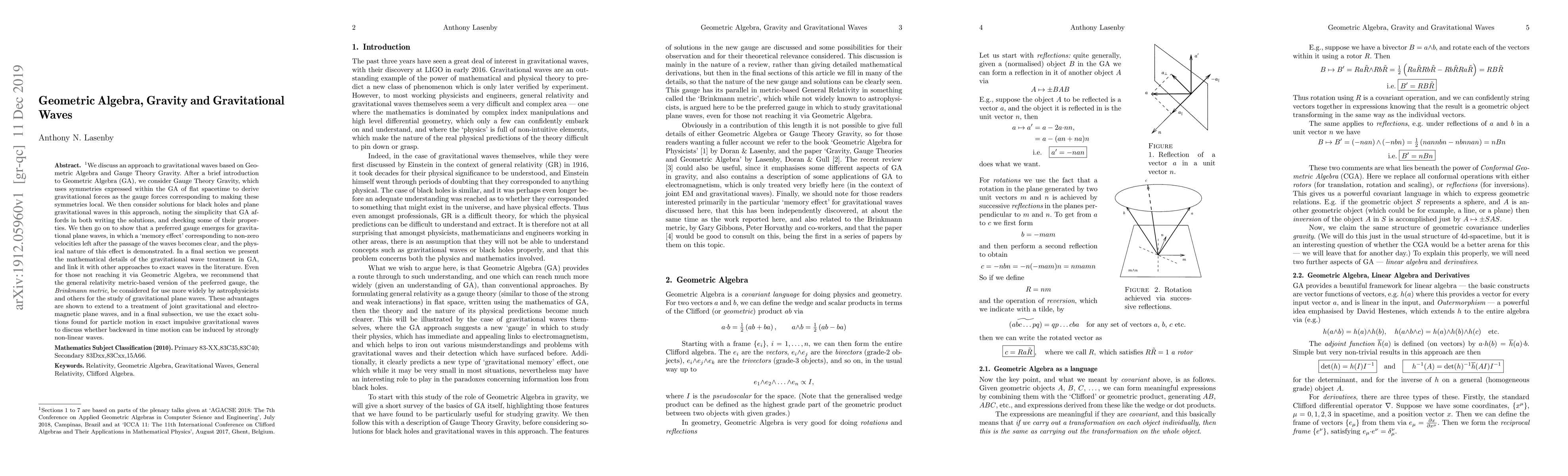 We discuss an approach to gravitational waves based on Geometric Algebra and Gauge Theory Gravity. After a brief introduction to Geometric Algebra (GA), we consider Gauge Theory Gravity, which uses symmetries expressed within the GA of flat spacetime to derive gravitational forces as the gauge forces corresponding to making these symmetries local. We then consider solutions for black holes and plane gravitational waves in this approach, noting the simplicity that GA affords in both writing the solutions, and checking some of their properties. We then go on to show that a preferred gauge emerges for gravitational plane waves, in which a `memory effect' corresponding to non-zero velocities left after the passage of the waves becomes clear, and the physical nature of this effect is demonstrated. In a final section we present the mathematical details of the gravitational wave treatment in GA, and link it with other approaches to exact waves in the literature. Even for those not reaching it via Geometric Algebra, we recommend that the general relativity metric-based version of the preferred gauge, the Brinkmann metric, be considered for use more widely by astrophysicists and others for the study of gravitational plane waves. These advantages are shown to extend to a treatment of joint gravitational and electromagnetic plane waves, and in a final subsection, we use the exact solutions found for particle motion in exact impulsive gravitational waves to discuss whether backward in time motion can be induced by strongly non-linear waves.