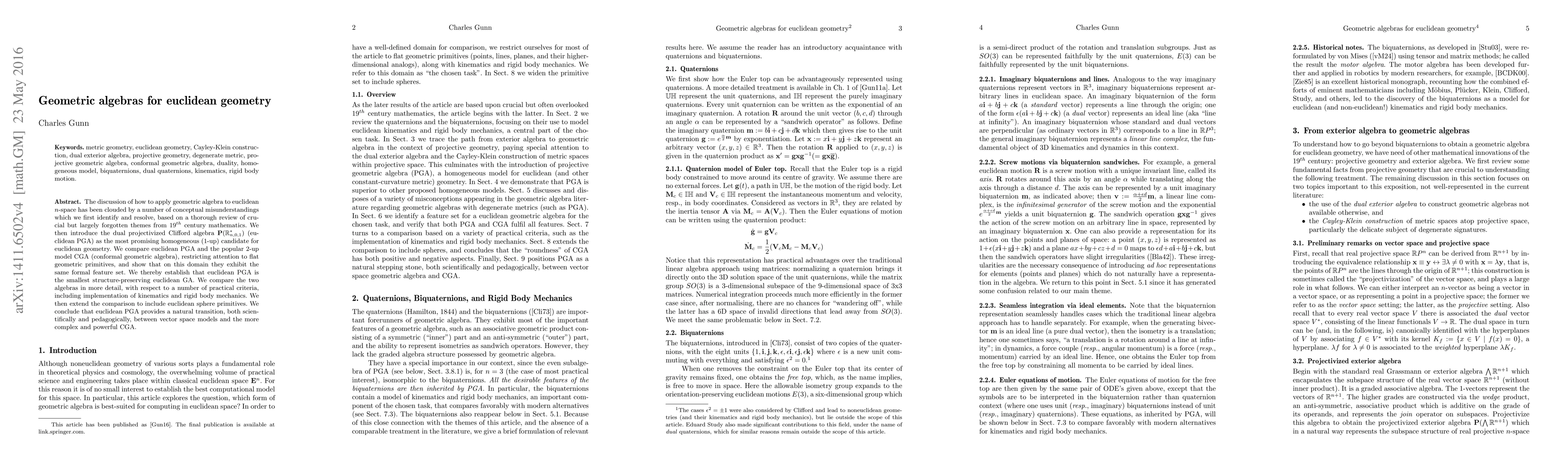 The discussion of how to apply geometric algebra to euclidean $n$-space has been clouded by a number of conceptual misunderstandings which we first identify and resolve, based on a thorough review of crucial but largely forgotten themes from $19^{th}$ century mathematics. We then introduce the dual projectivized Clifford algebra $\mathbf{P}(\mathbb{R}^*_{n,0,1})$ (euclidean PGA) as the most promising homogeneous (1-up) candidate for euclidean geometry. We compare euclidean PGA and the popular 2-up model CGA (conformal geometric algebra), restricting attention to flat geometric primitives, and show that on this domain they exhibit the same formal feature set. We thereby establish that euclidean PGA is the smallest structure-preserving euclidean GA. We compare the two algebras in more detail, with respect to a number of practical criteria, including implementation of kinematics and rigid body mechanics. We then extend the comparison to include euclidean sphere primitives. We conclude that euclidean PGA provides a natural transition, both scientifically and pedagogically, between vector space models and the more complex and powerful CGA.