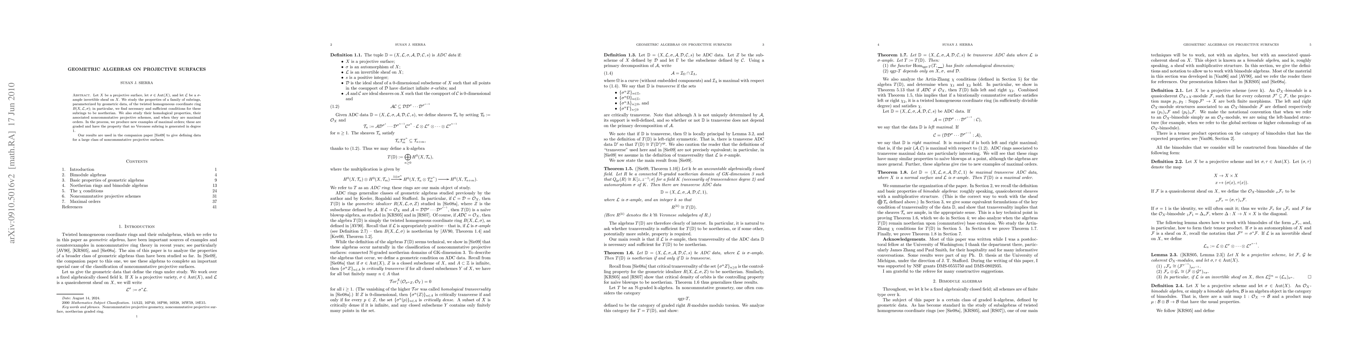 This research paper studies geometric algebras on projective surfaces, focusing on subrings of a twisted homogeneous coordinate ring with specific properties such as noetherian condition and maximal orders.