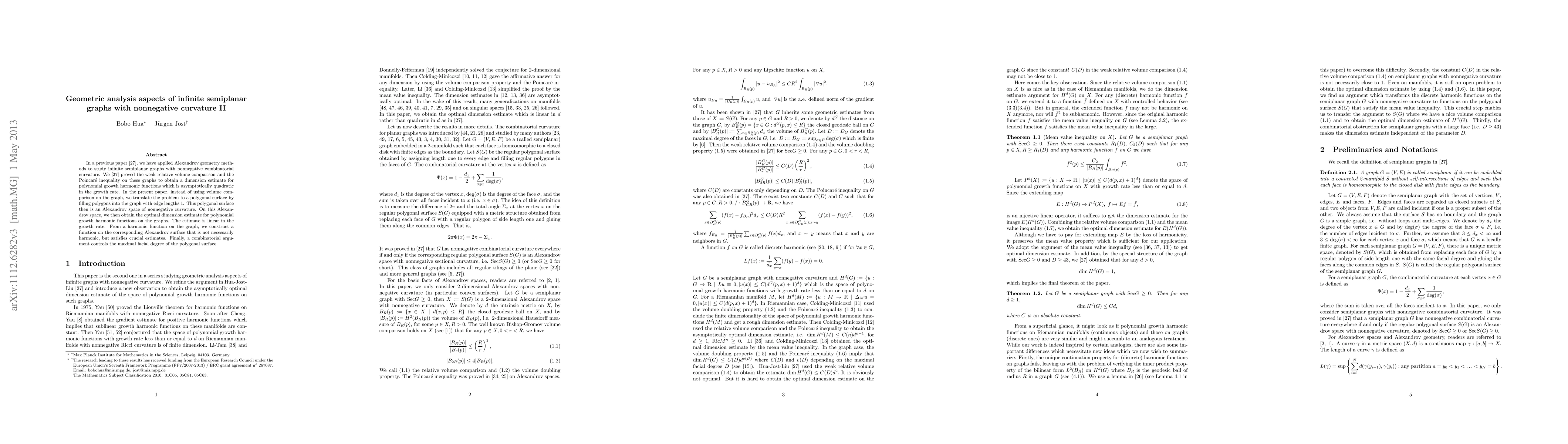 This paper builds on previous work to refine dimension estimates for polynomial growth harmonic functions on infinite semiplanar graphs with nonnegative curvature, using Alexandrov geometry methods. Instead of focusing on volume comparison on graphs, it directly employs Alexandrov spaces to achieve an optimal linear dimension estimate, contrasting with the previous asymptotic quadratic growth.