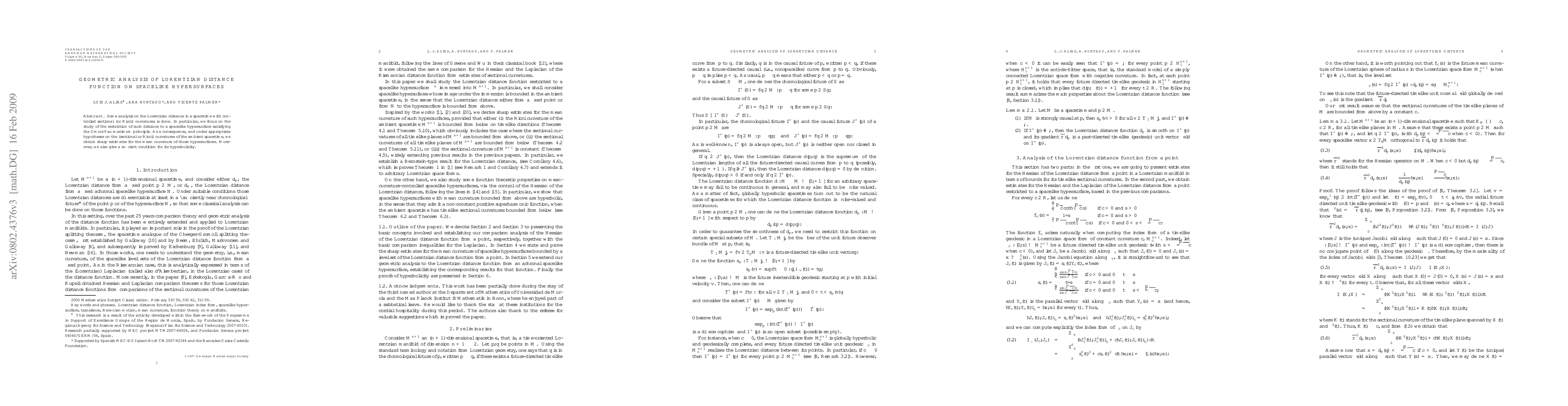 Some analysis on the Lorentzian distance in a spacetime with controlled sectional (or Ricci) curvatures is done. In particular, we focus on the study of the restriction of such distance to a spacelike hypersurface satisfying the Omori-Yau maximum principle. As a consequence, and under appropriate hypotheses on the (sectional or Ricci) curvatures of the ambient spacetime, we obtain sharp estimates for the mean curvature of those hypersurfaces. Moreover, we also give a suficient condition for its hyperbolicity.