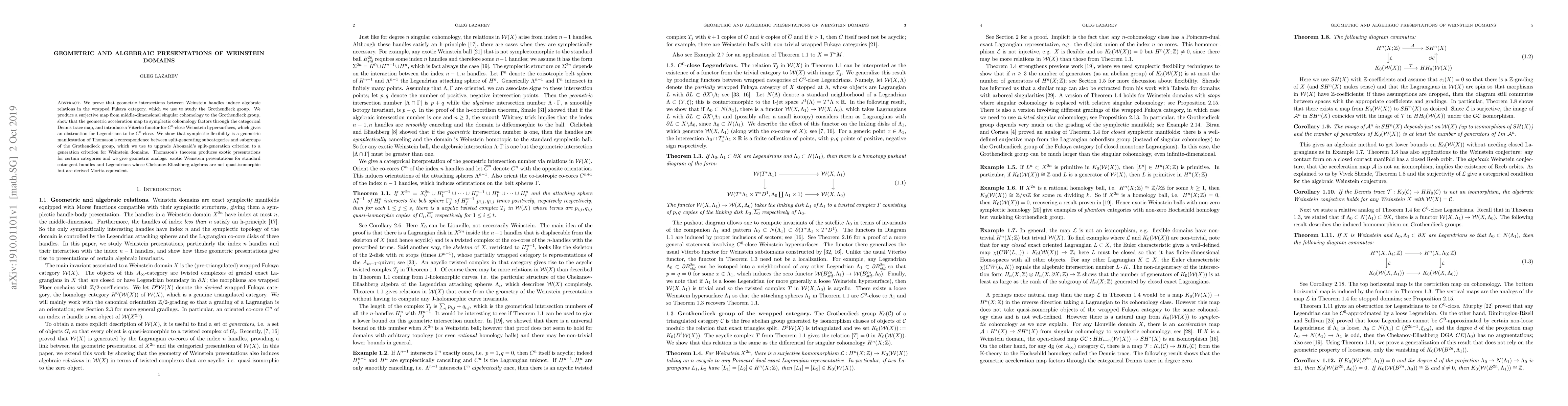 We prove that geometric intersections between Weinstein handles induce algebraic relations in the wrapped Fukaya category, which we use to study the Grothendieck group. We produce a surjective map from middle-dimensional singular cohomology to the Grothendieck group, show that the geometric acceleration map to symplectic cohomology factors through the categorical Dennis trace map, and introduce a Viterbo functor for $C^0$-close Weinstein hypersurfaces, which gives an obstruction for Legendrians to be $C^0$-close. We show that symplectic flexibility is a geometric manifestation of Thomason's correspondence between split-generating subcategories and subgroups of the Grothendieck group, which we use to upgrade Abouzaid's split-generation criterion to a generation criterion for Weinstein domains. Thomason's theorem produces exotic presentations for certain categories and we give geometric analogs: exotic Weinstein presentations for standard cotangent bundles and Legendrians whose Chekanov-Eliashberg algebras are not quasi-isomorphic but are derived Morita equivalent.