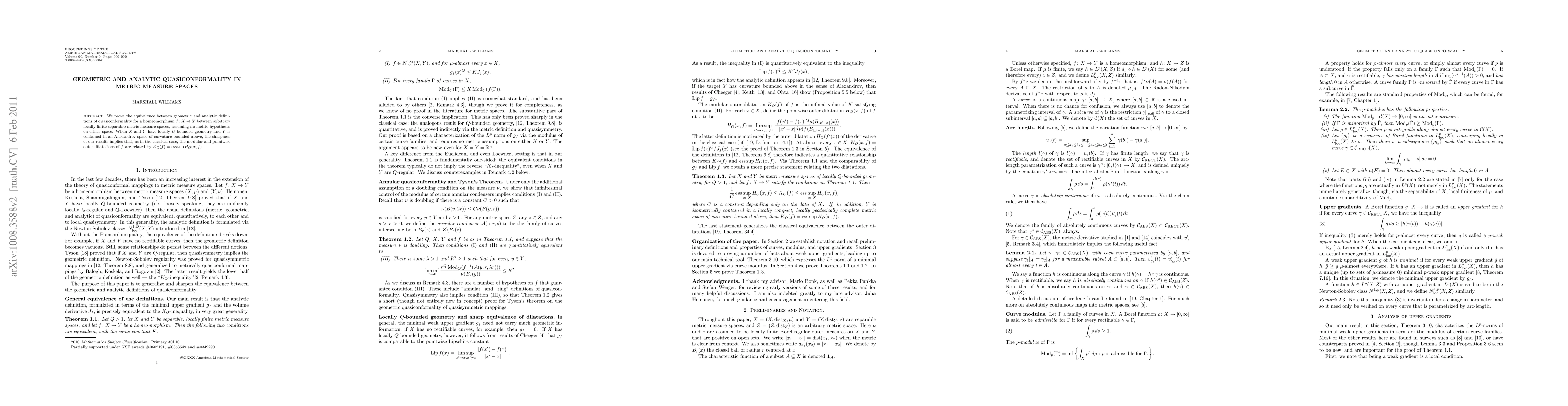 We prove the equivalence between geometric and analytic definitions of quasiconformality for a homeomorphism $f\colon X\rightarrow Y$ between arbitrary locally finite separable metric measure spaces, assuming no metric hypotheses on either space. When $X$ and $Y$ have locally $Q$-bounded geometry and $Y$ is contained in an Alexandrov space of curvature bounded above, the sharpness of our results implies that, as in the classical case, the modular and pointwise outer dilatations of $\map$ are related by $K_O(f)= \operatorname{esssup} H_O(x,f)$.