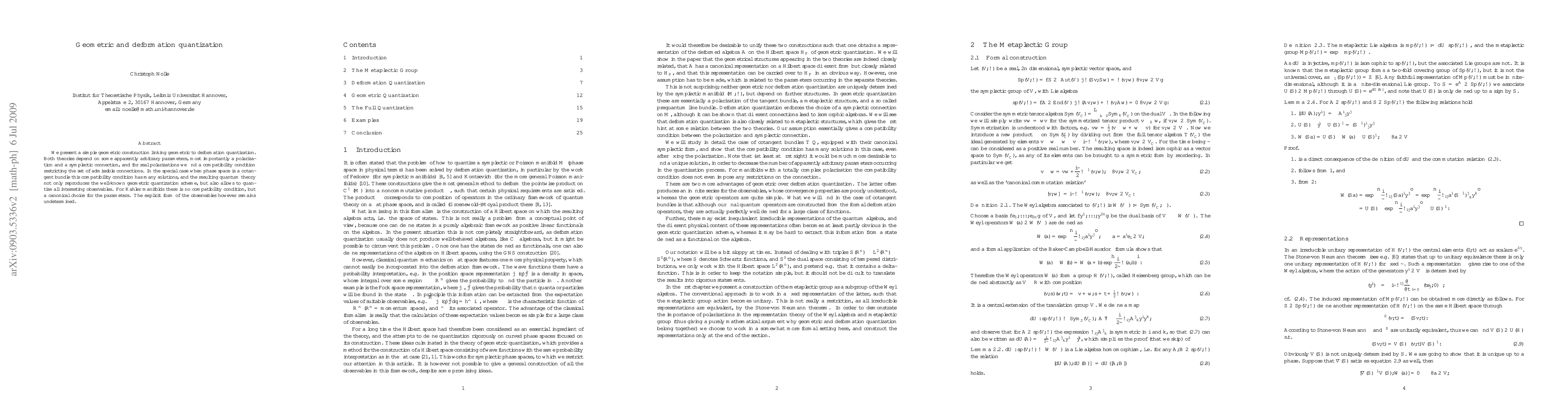 This paper constructs a link between geometric and deformation quantization, revealing a compatibility condition for real polarizations that restricts admissible symplectic connections. For cotangent bundles, it shows how the resulting quantum theory reproduces geometric quantization and quantizes observables. For Kähler manifolds, it identifies a canonical parameter choice but leaves the explicit form of observables undetermined.