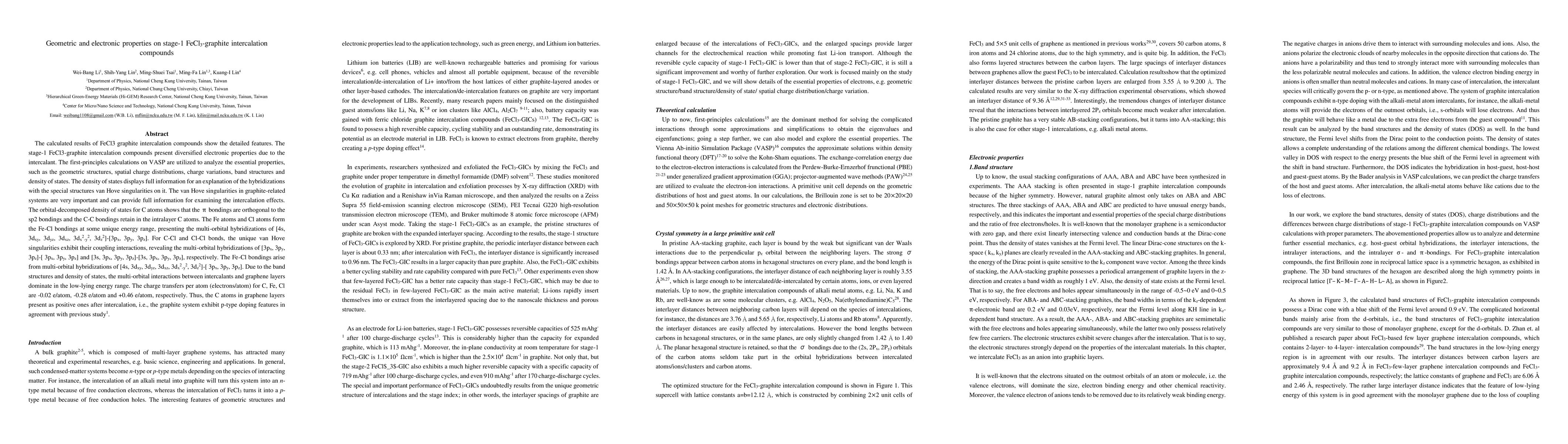 This study investigates the geometric and electronic properties of stage-1 FeCl3-graphite intercalation compounds using first-principles calculations. The analysis reveals diversified electronic properties due to FeCl3 intercalation, with significant multi-orbital hybridizations and van Hove singularities, indicating p-type doping in the graphene layers.
