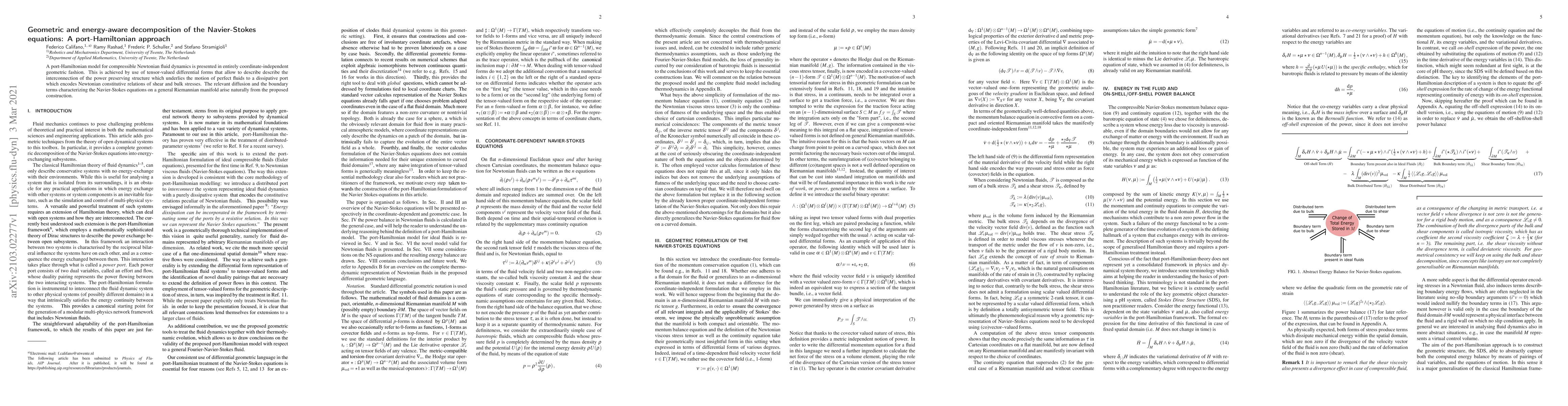 This paper presents a coordinate-independent geometric model for compressible fluid dynamics using port-Hamiltonian systems, utilizing tensor-valued differential forms to describe the interconnection of power-preserving fluid motion and dissipative Newtonian stresses. The approach naturally derives diffusion and boundary terms for the Navier-Stokes equations on Riemannian manifolds.