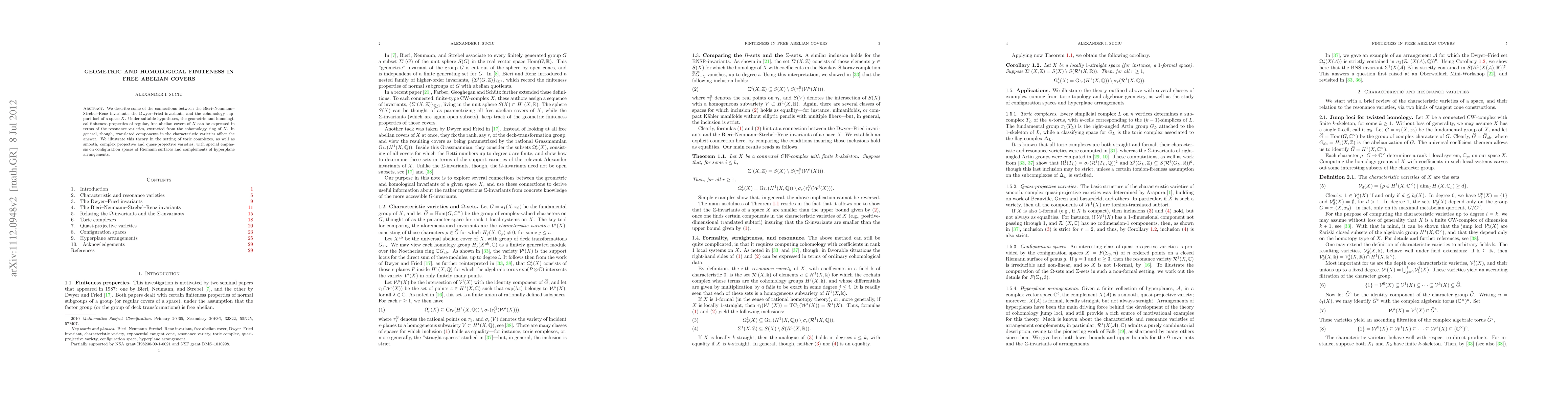 This paper connects geometric and homological finiteness properties in free abelian covers to resonance varieties extracted from a space's cohomology ring, with applications in toric complexes and configuration spaces of Riemann surfaces.