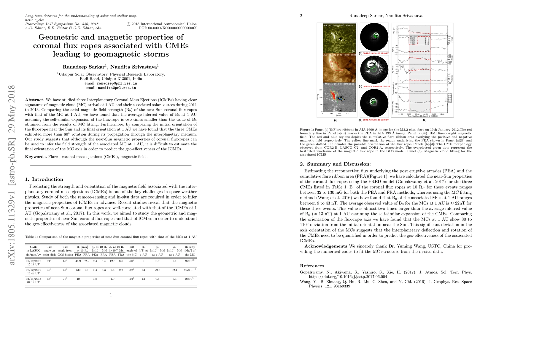 Research found that coronal flux ropes' magnetic field strength at 1 AU is often less than expected, with an average of 2x weaker, and their orientation changes significantly during propagation, making prediction of geomagnetic storms challenging.