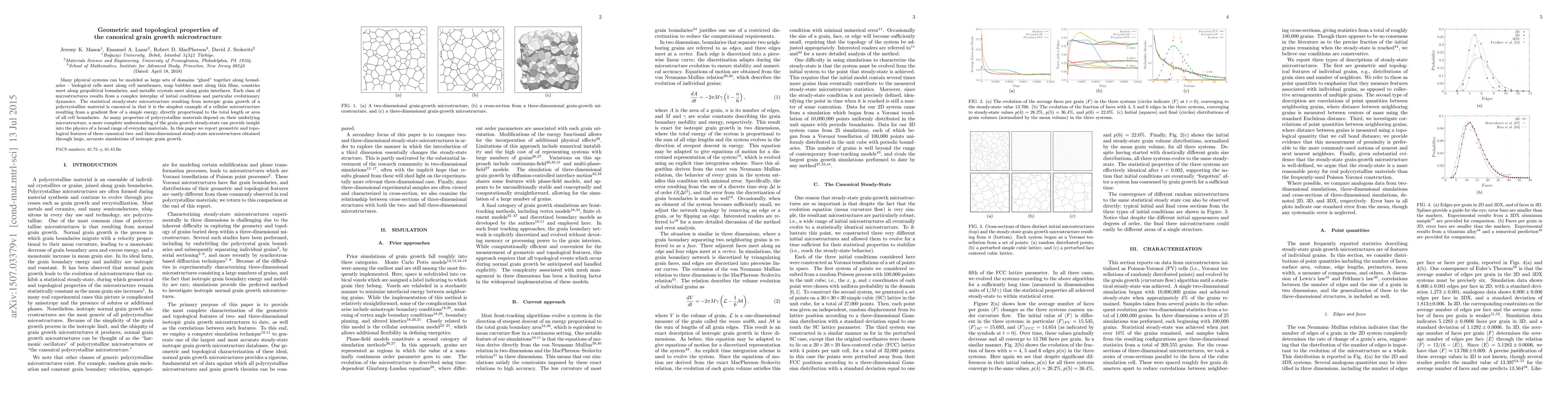 Many physical systems can be modeled as large sets of domains "glued" together along boundaries - biological cells meet along cell membranes, soap bubbles meet along thin films, countries meet along geopolitical boundaries, and metallic crystals meet along grain interfaces. Each class of microstructures results from a complex interplay of initial conditions and particular evolutionary dynamics. The statistical steady-state microstructure resulting from isotropic grain growth of a polycrystalline material is canonical in that it is the simplest example of a cellular microstructure resulting from a gradient flow of a simple energy, directly proportional to the total length or area of all cell boundaries. As many properties of polycrystalline materials depend on their underlying microstructure, a more complete understanding of the grain growth steady-state can provide insight into the physics of a broad range of everyday materials. In this paper we report geometric and topological features of these canonical two- and three-dimensional steady-state microstructures obtained through large, accurate simulations of isotropic grain growth.