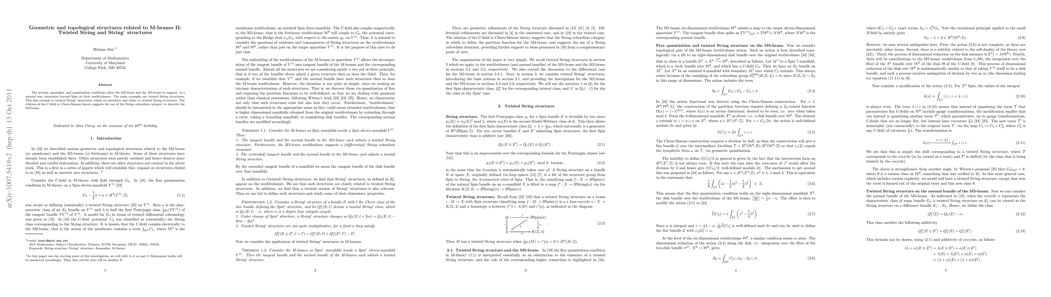 The actions, anomalies, and quantization conditions allow the M2-brane and the M5-brane to support, in a natural way, structures beyond Spin on their worldvolumes. The main examples are twisted String structures. This also extends to twisted String^c structures, which we introduce and relate to twisted String structures. The relation of the C-field to Chern-Simons theory suggests the use of the String cobordism category to describe the M2-brane.