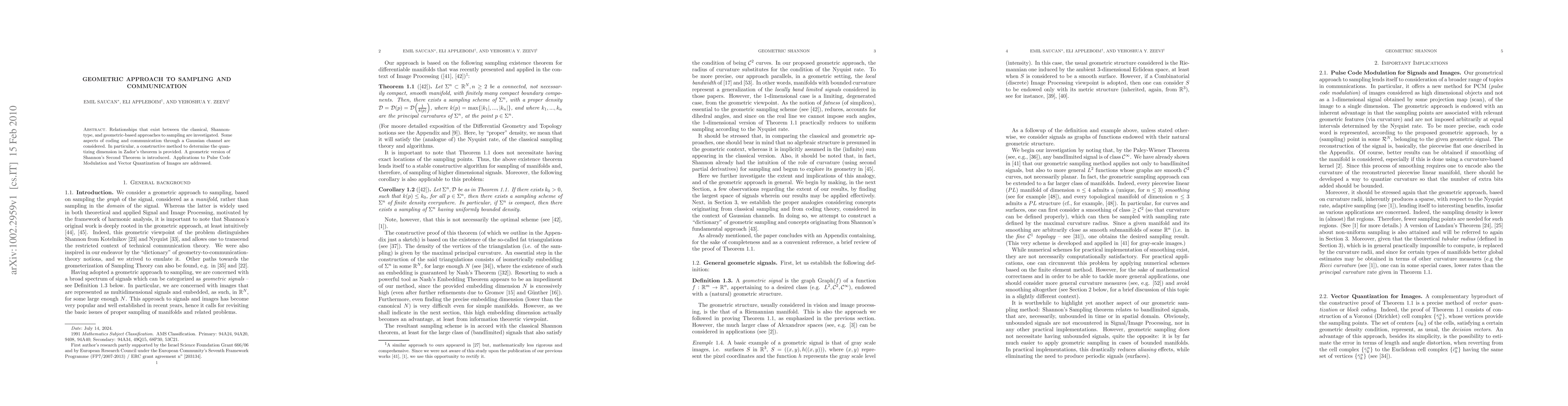 Researchers explored a geometric approach to sampling and communication, introducing a new theorem and method for determining quantizing dimension in Pulse Code Modulation and Vector Quantization of Images.