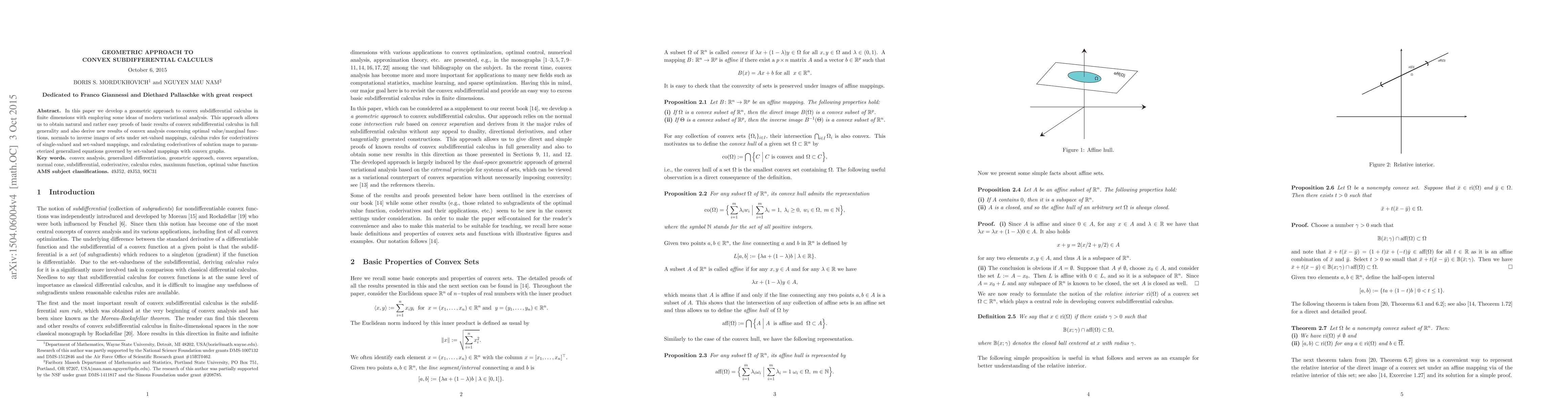 In this paper we develop a geometric approach to convex subdifferential calculus in finite dimensions with employing some ideas of modern variational analysis. This approach allows us to obtain natural and rather easy proofs of basic results of convex subdifferential calculus in full generality and also derive new results of convex analysis concerning marginal/value functions, normal of inverse images of sets under set-valued mappings, calculus rules for coderivatives of single-valued and set-valued mappings, and calculating coderivatives of solution maps to convex generalized equations.
