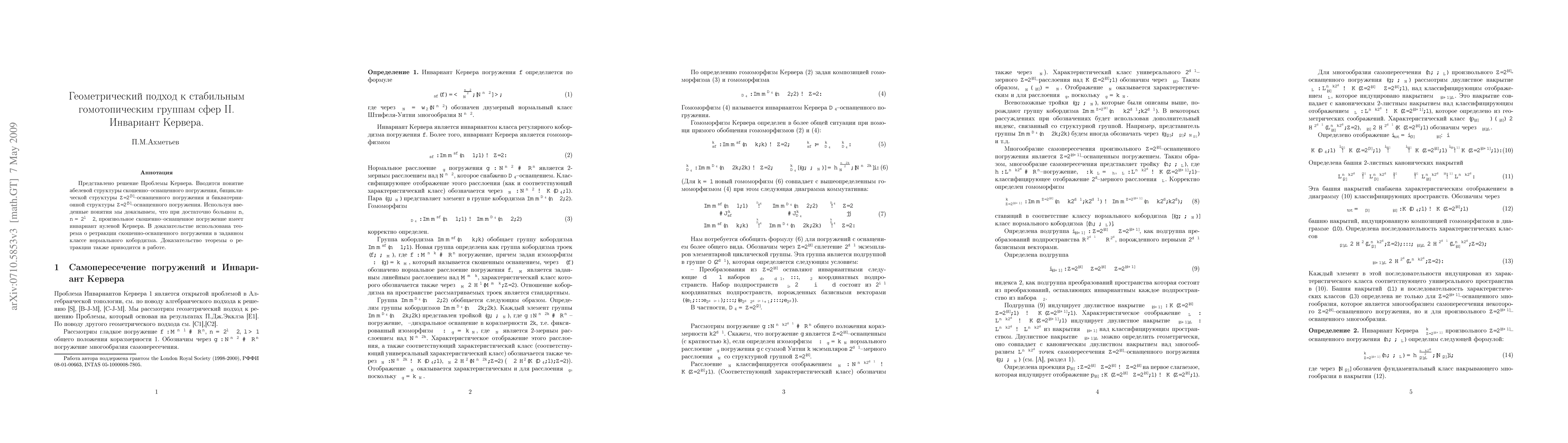 Summary: Kervaire's paper establishes the existence of an integer $L$ ensuring that framed manifolds of dimension $2^l-2$ with $l\le L$ have a trivial Kervaire invariant, contributing to the understanding of stable homotopy groups of spheres.