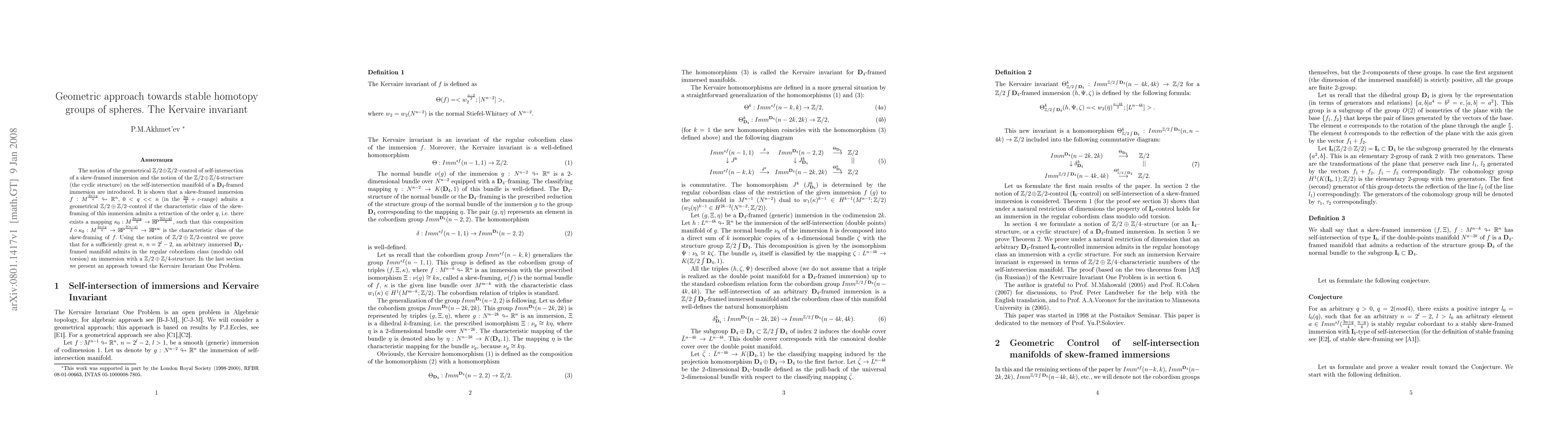 Research introduces a geometric approach to studying stable homotopy groups of spheres, specifically the Kervaire invariant II, which shows that certain framed immersions admit specific control structures for self-intersection.