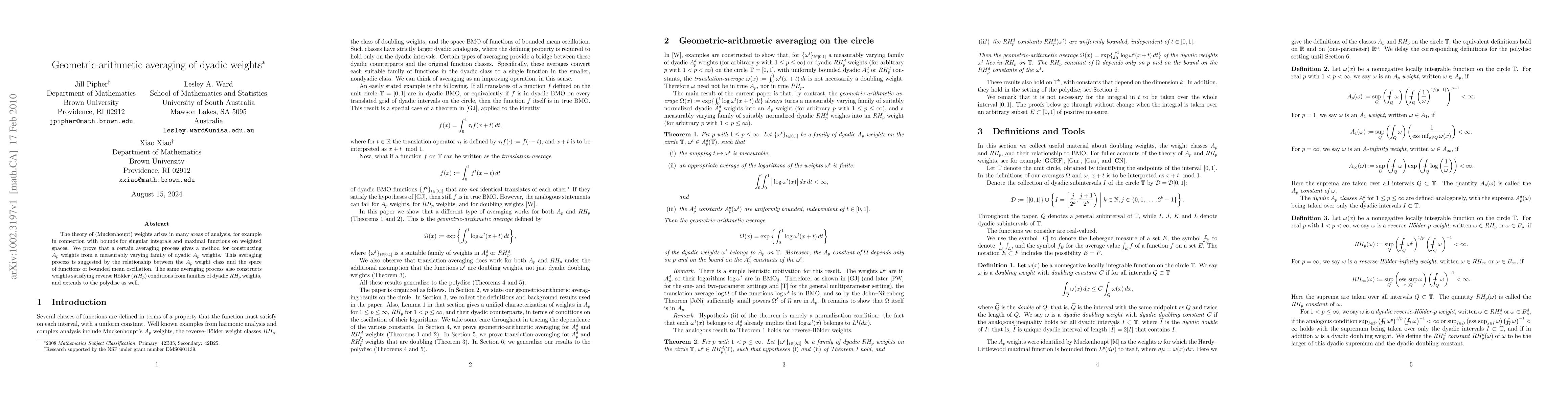 This paper introduces a geometric-arithmetic averaging method to construct A_p weights from a family of dyadic A_p weights, linking the process to the space of functions of bounded mean oscillation. It also extends the method to construct reverse Hölder (RH_p) weights from dyadic RH_p weights and applies to the polydisc.