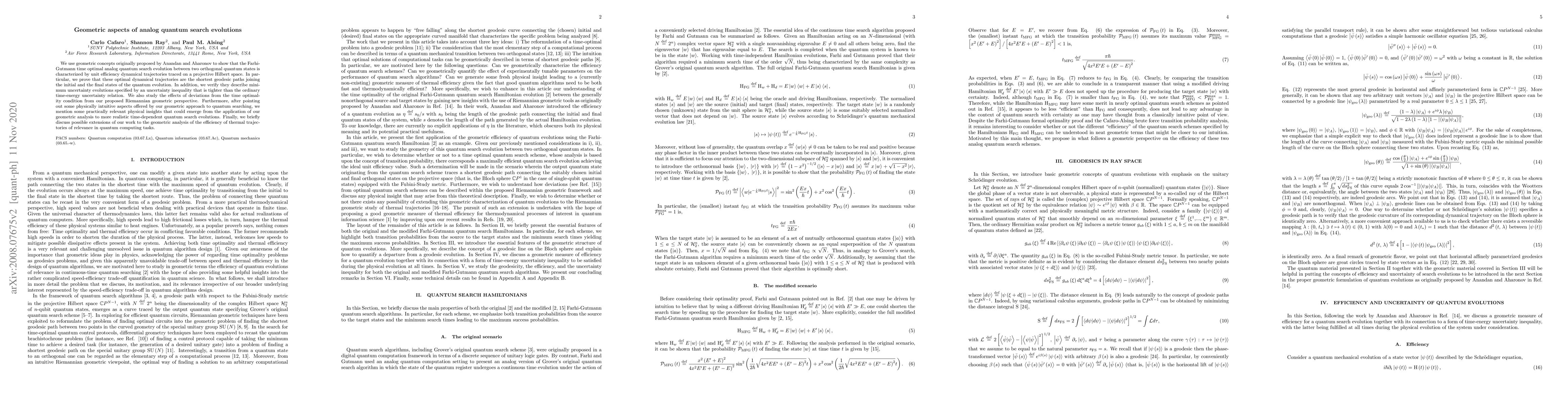 Researchers prove that analog quantum search evolutions follow the shortest geodesic paths in a projective Hilbert space, achieving optimal efficiency with minimum uncertainty, offering new insights into quantum computing tasks.