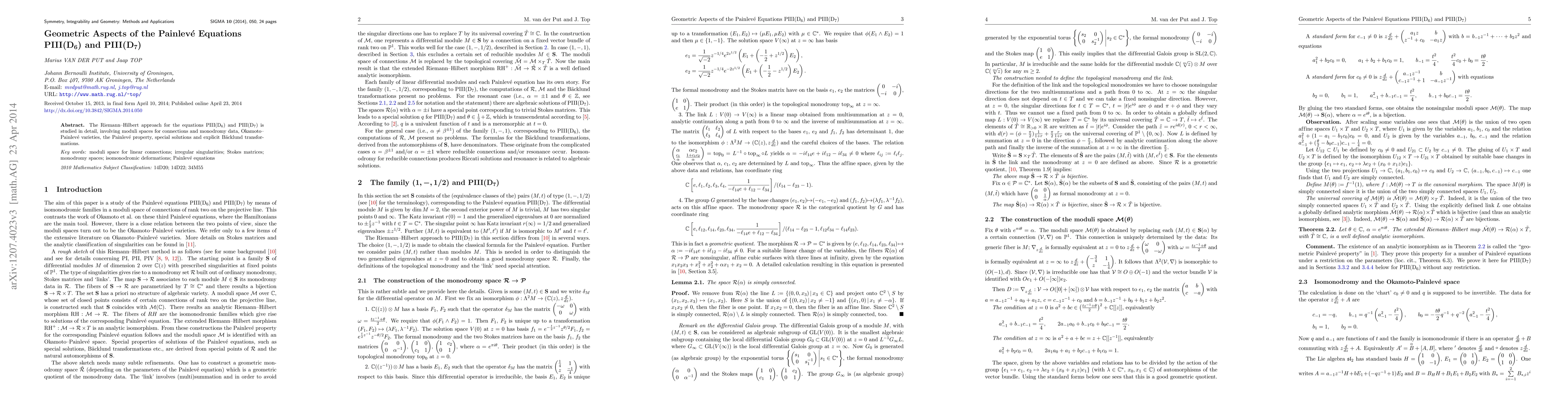This research delves into the geometric properties of Painlevé equations PIII(D_6) and PIII(D_7), employing the Riemann-Hilbert method to analyze moduli spaces, Okamoto-Painlevé varieties, Painlevé property, special solutions, and Bäcklund transformations. It provides in-depth insights into these equations' structures and transformations.