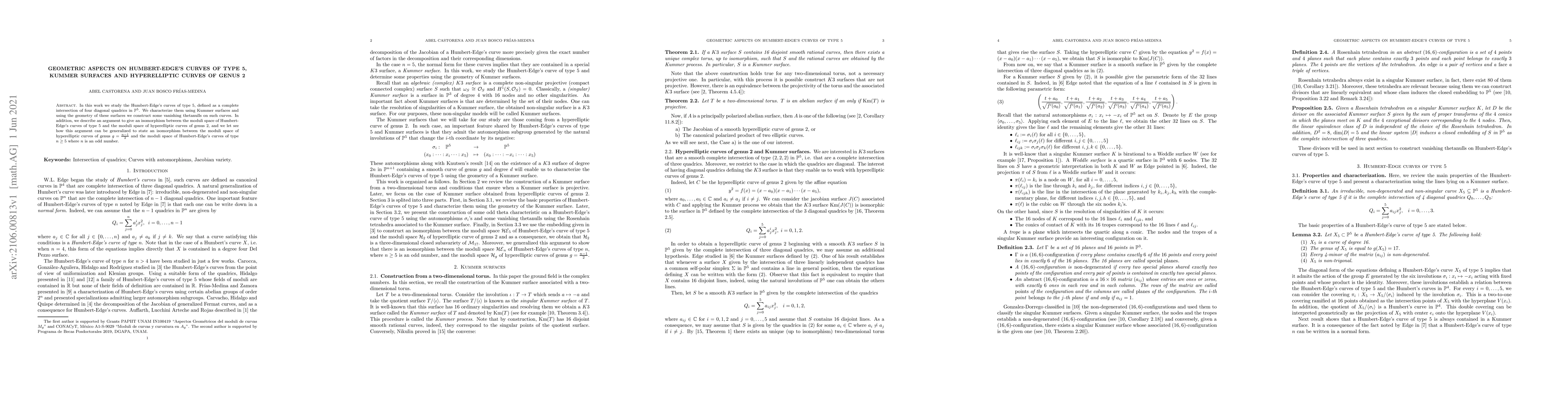 Researchers study Humbert-Edge curves of type 5, linking them to Kummer surfaces and hyperelliptic curves of genus 2, proposing a generalization for odd n.