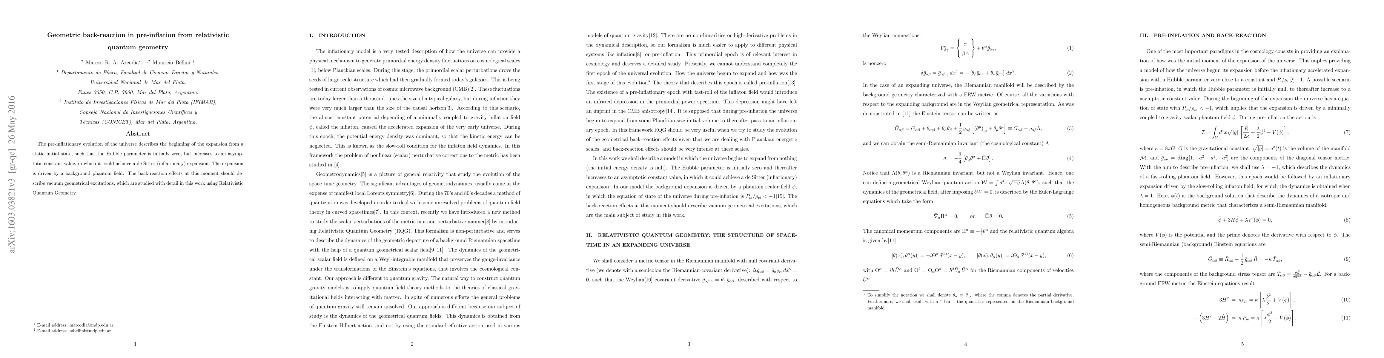 This paper investigates the pre-inflationary evolution of the universe, focusing on vacuum geometrical excitations using Relativistic Quantum Geometry, and finds geometric back-reaction effects that drive expansion in a background phantom field.