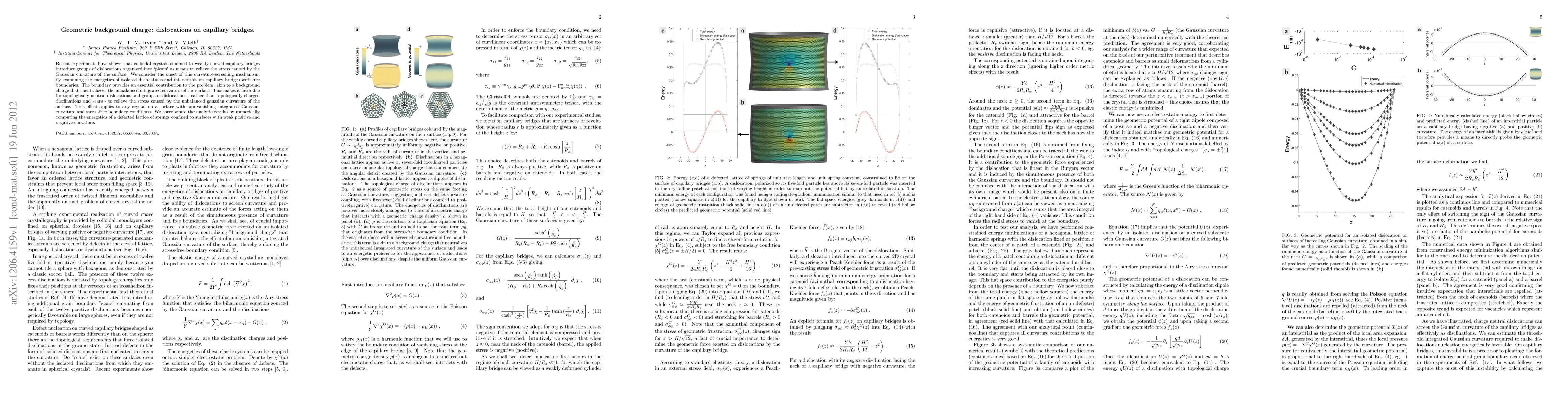 Recent experiments have shown that colloidal crystals confined to weakly curved capillary bridges introduce groups of dislocations organized into `pleats' as means to relieve the stress caused by the Gaussian curvature of the surface. We consider the onset of this curvature-screening mechanism, by examining the energetics of isolated dislocations and interstitials on capillary bridges with free boundaries. The boundary provides an essential contribution to the problem, akin to a background charge that "neutralizes" the unbalanced integrated curvature of the surface. This makes it favorable for topologically neutral dislocations and groups of dislocations - rather than topologically charged disclinations and scars - to relieve the stress caused by the unbalanced gaussian curvature of the surface. This effect applies to any crystal on a surface with non-vanishing integrated Gaussian curvature and stress-free boundary conditions. We corroborate the analytic results by numerically computing the energetics of a defected lattice of springs confined to surfaces with weak positive and negative curvature
