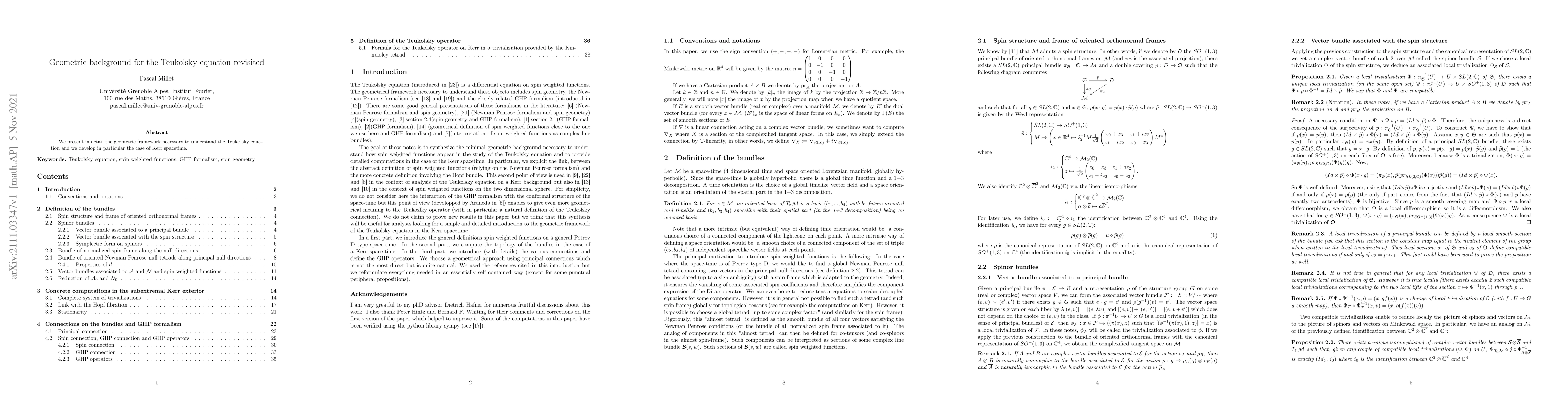 We present in detail the geometric framework necessary to understand the Teukolsky equation and we develop in particular the case of Kerr spacetime.