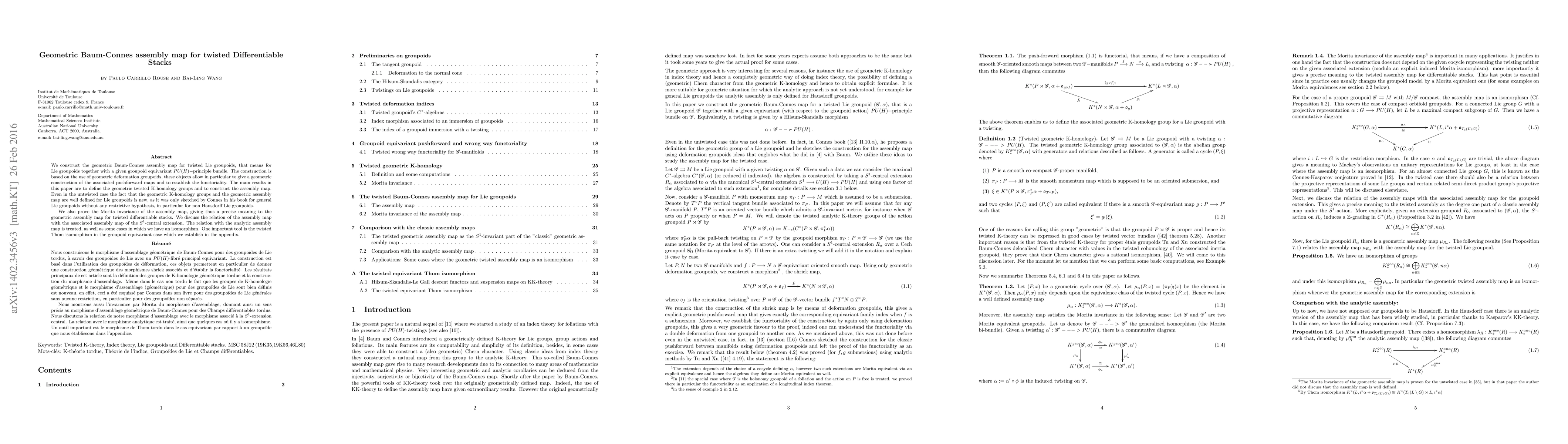 The paper constructs the geometric Baum-Connes assembly map for twisted Lie groupoids using geometric deformation groupoids, providing a geometric construction of associated pushforward maps and establishing functoriality.