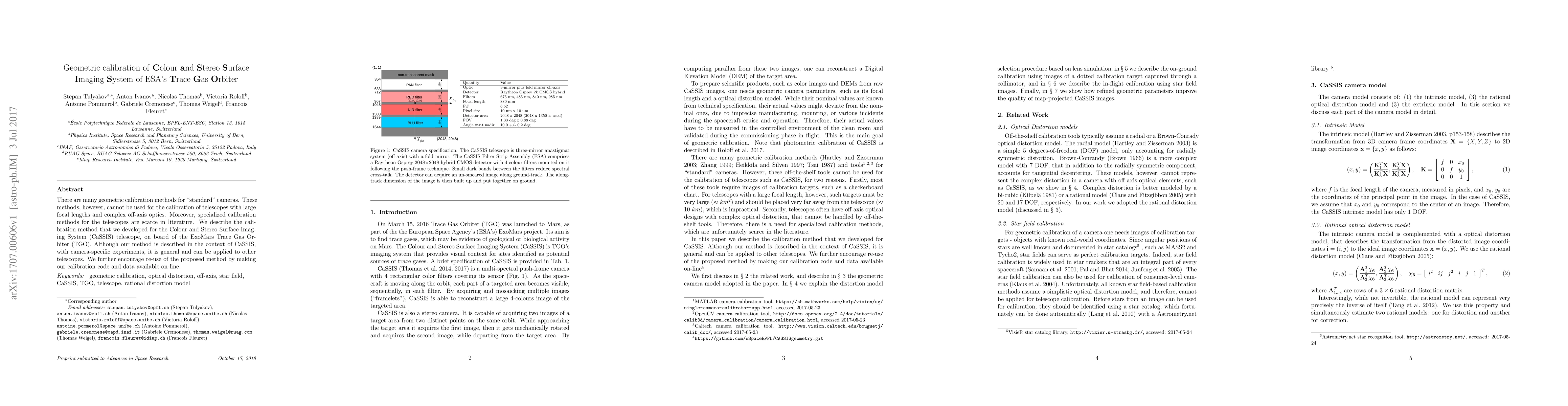 Developed a geometric calibration method for large-focal telescopes with complex optics, applicable to the ESA's Trace Gas Orbiter's Colour and Stereo Surface Imaging System.