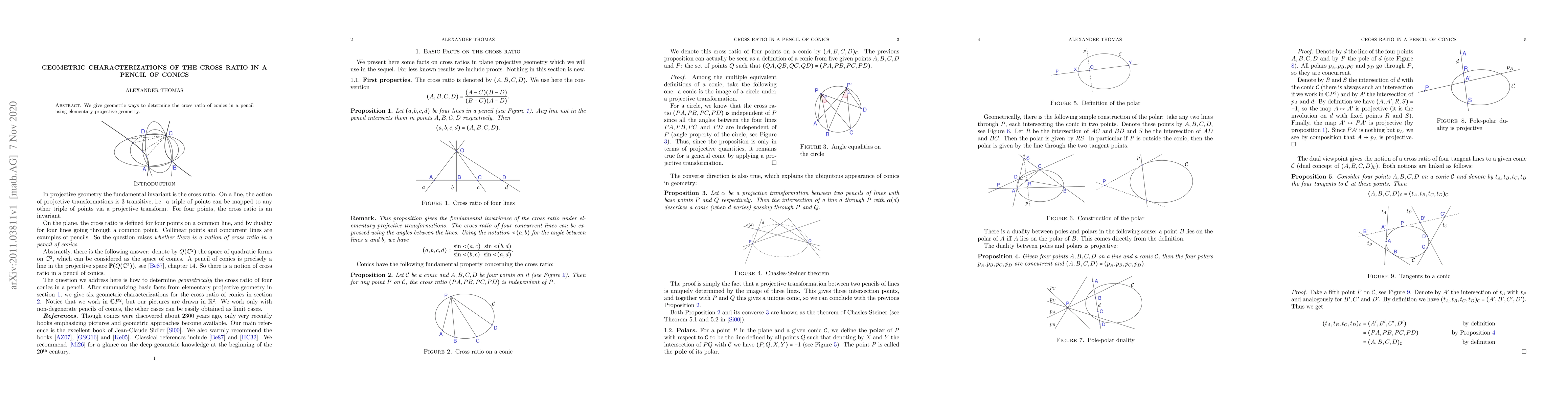 We give geometric ways to determine the cross ratio of conics in a pencil using elementary projective geometry.