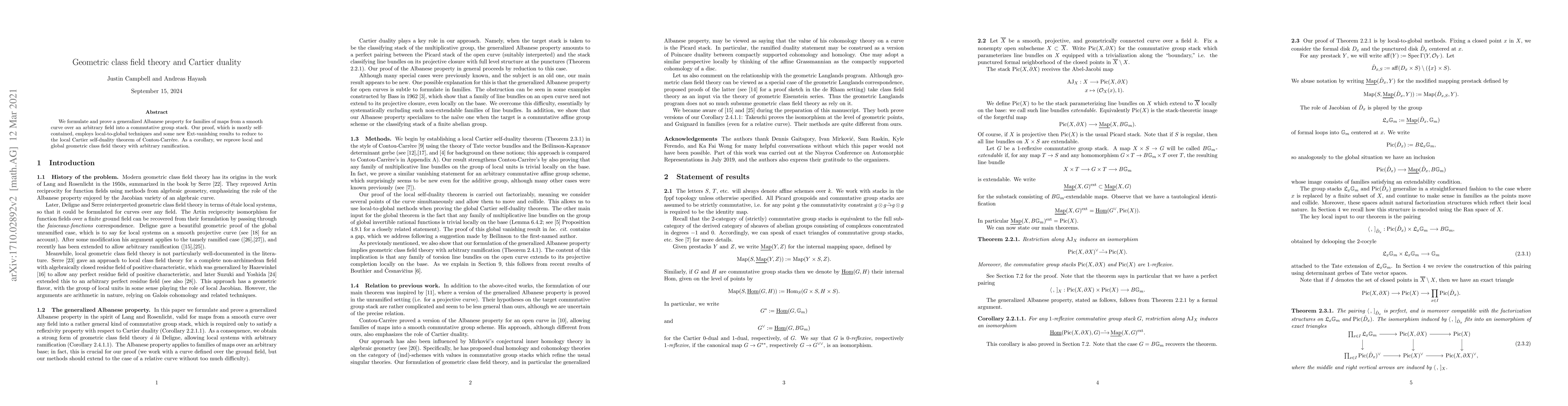This paper establishes a generalized Albanese property for families of maps from smooth curves to commutative group stacks, using local-to-global techniques and new Ext-vanishing results. It also reproves both local and global geometric class field theory with arbitrary ramification via Cartier duality.