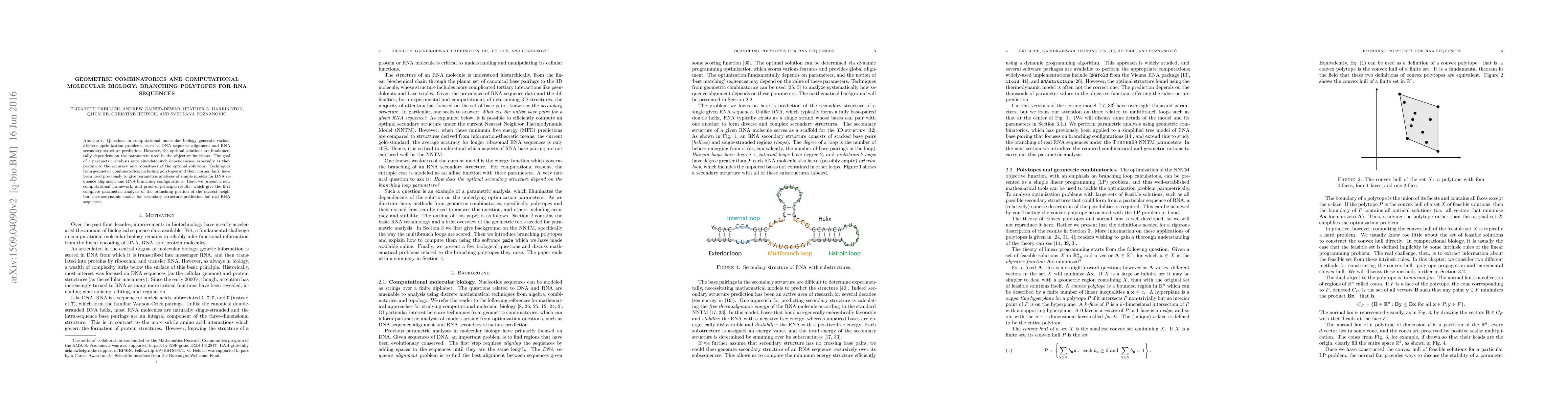 This paper introduces a computational framework using geometric combinatorics, specifically branching polytopes, to perform a complete parametric analysis of RNA secondary structure prediction in the nearest neighbor thermodynamic model. This approach aims to elucidate dependencies in the objective functions that determine the accuracy and robustness of optimal RNA sequence solutions.