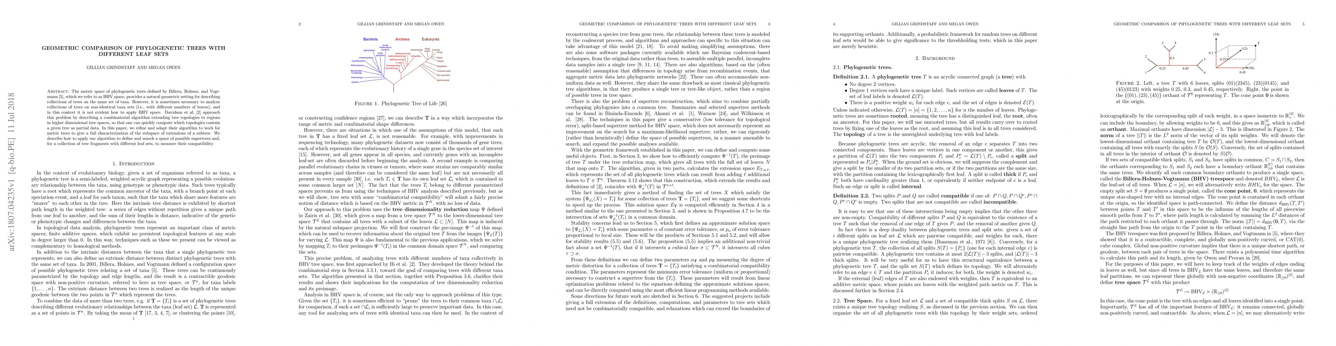 Researchers developed a method to analyze phylogenetic trees on non-identical taxa sets, enabling the comparison of tree fragments with different leaf sets. The approach provides a full characterization of subspace extensions of subtrees, allowing for the definition and search of possible supertrees.