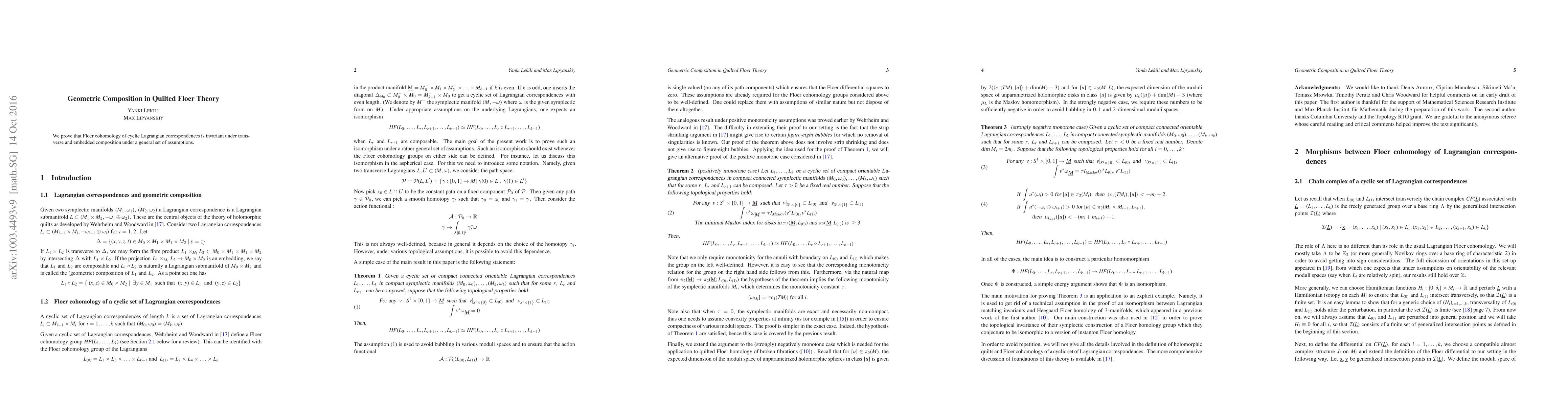 We prove that Floer cohomology of cyclic Lagrangian correspondences is invariant under transverse and embedded composition of Lagrangians under a general set of assumptions. In the Corrigendum, we introduce an additional assumption of monotonicity for cylinders which is needed to avoid bubbling at the Y-end.