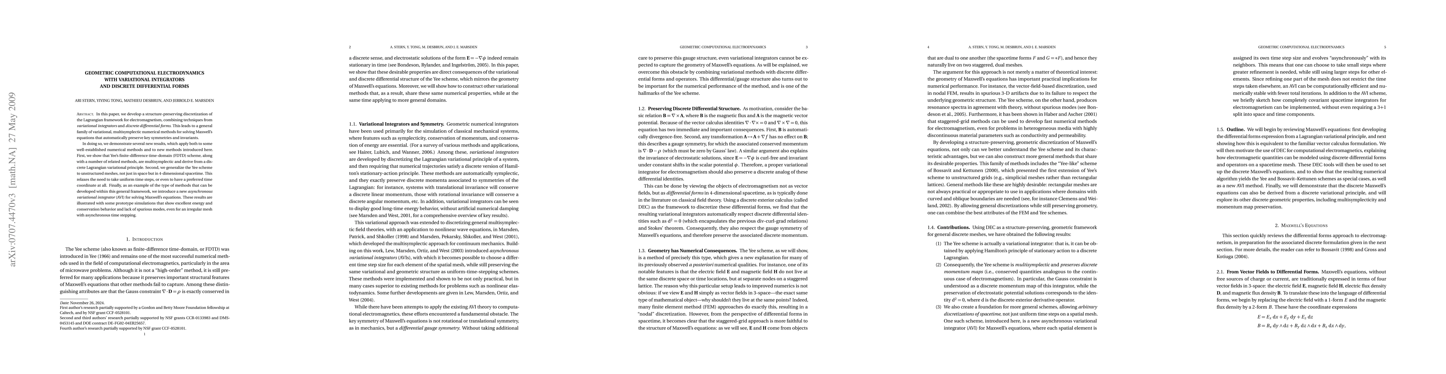 This paper develops a structure-preserving discretization of electromagnetism using variational integrators and discrete differential forms, leading to new variational, multisymplectic methods for Maxwell's equations. It generalizes Yee's FDTD scheme to unstructured spacetime meshes and introduces an asynchronous variational integrator, demonstrating excellent conservation properties in simulations.