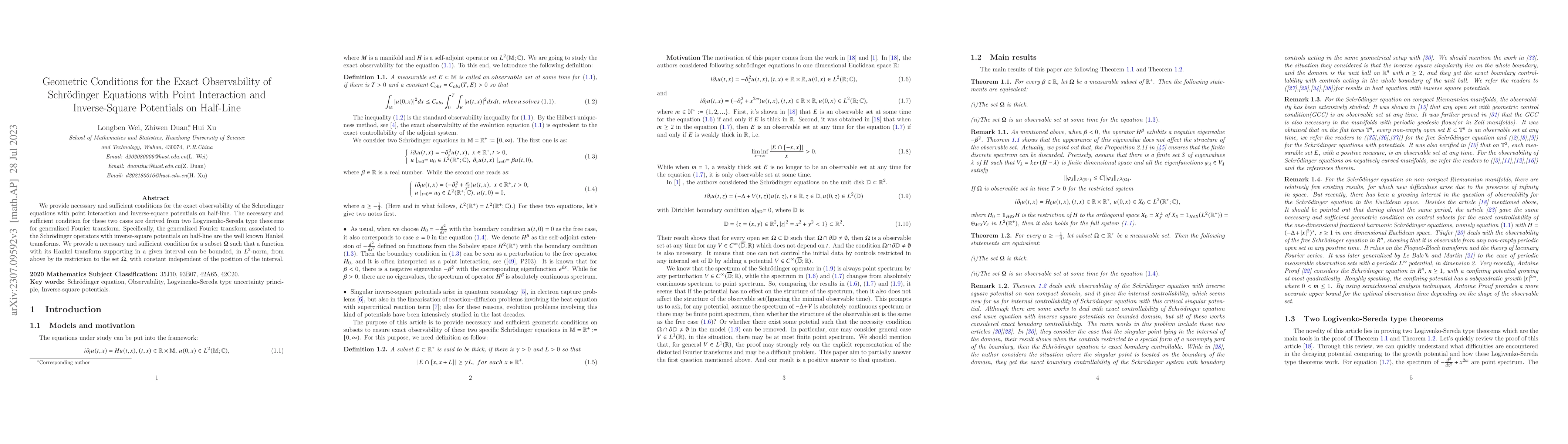 We provide necessary and sufficient conditions for the exact observability of the Schrodinger equations with point interaction and inverse-square potentials on half-line. The necessary and sufficient condition for these two cases are derived from two Logvinenko-Sereda type theorems for generalized Fourier transform. Specifically, the generalized Fourier transform associated to the Schr\"{o}dinger operators with inverse-square potentials on half-line are the well known Hankel transforms. We provide a necessary and sufficient condition for a subset $\Omega$ such that a function with its Hankel transform supporting in a given interval can be bounded, in $L^{2}$-norm, from above by its restriction to the set $\Omega$, with constant independent of the position of the interval